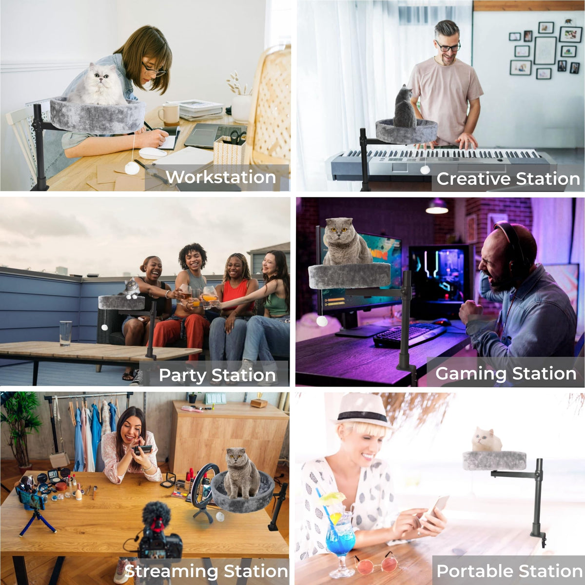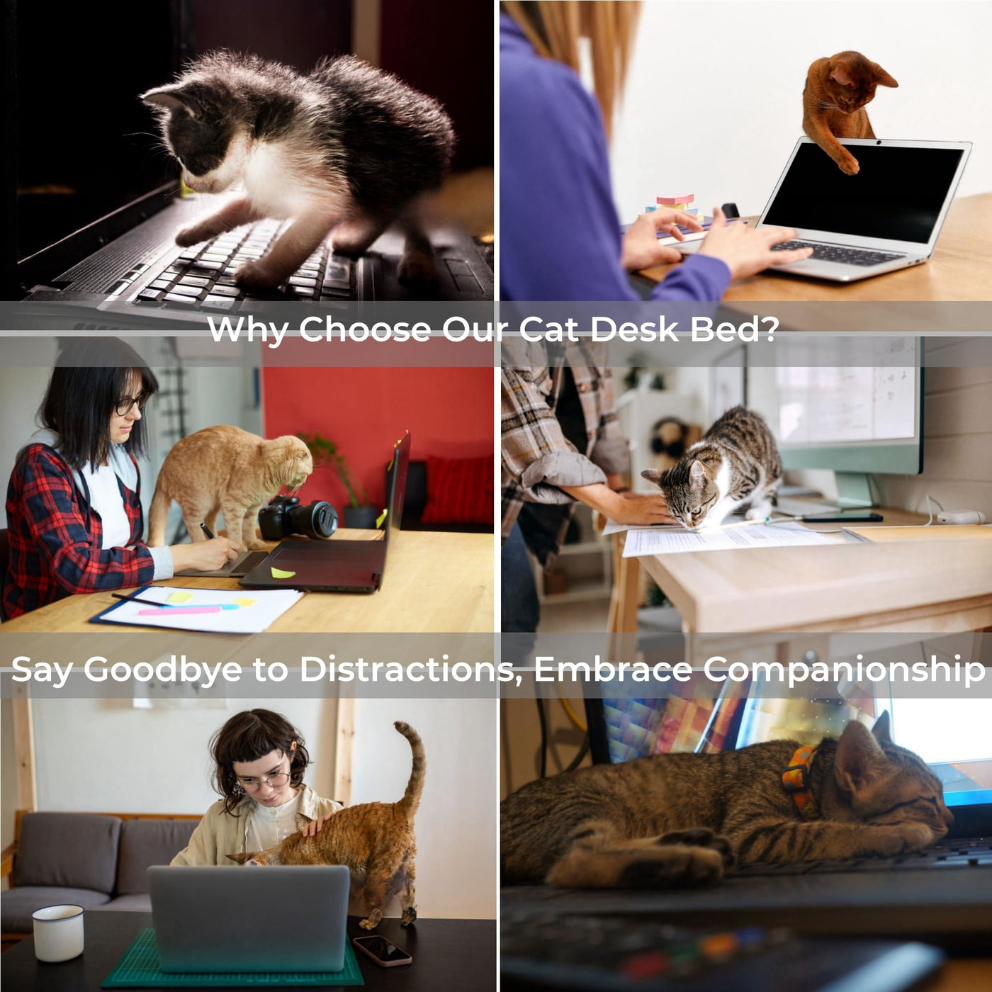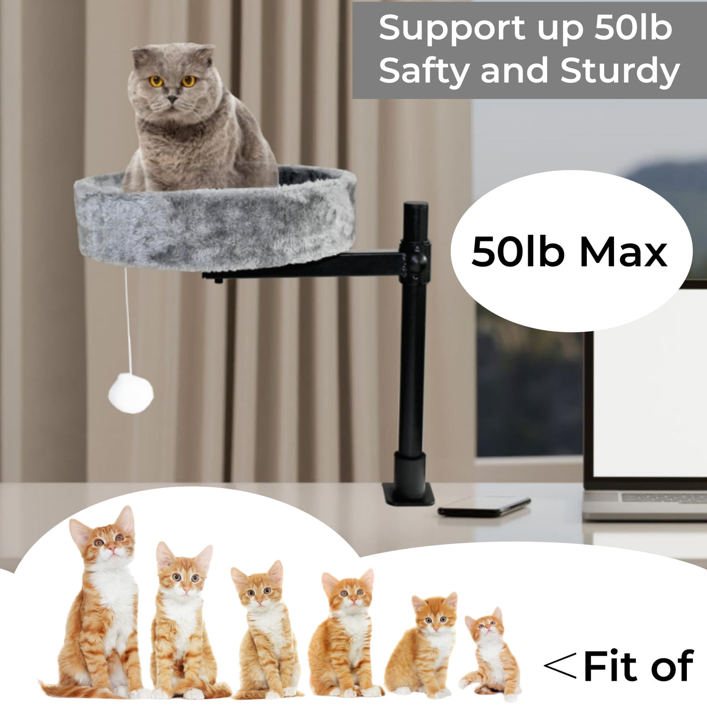 Why Choose Our Cat Desk Bed? Saves Space And Keeps Your Cat Close 360 Rotation & Adjustable Height For Versatility Durable Metal Construction Supports Up To 50 Pounds Easy To Install Without Damaging Your Desk Elevated Design For Your Cats Comfort And Safety Keep Your Furry Friend Close While You Work