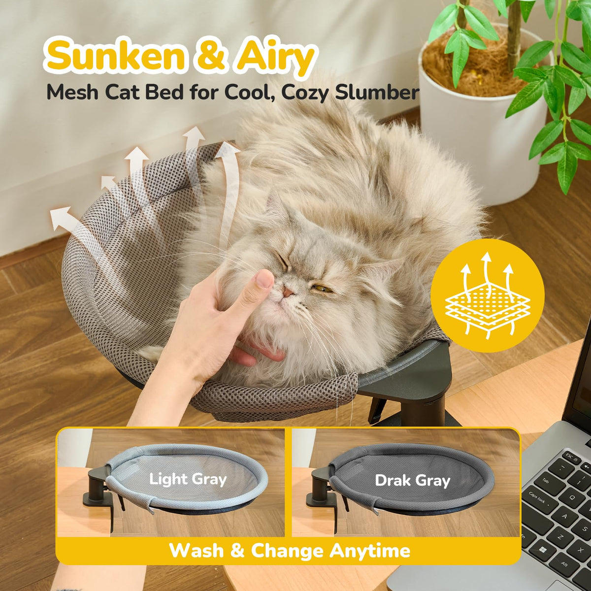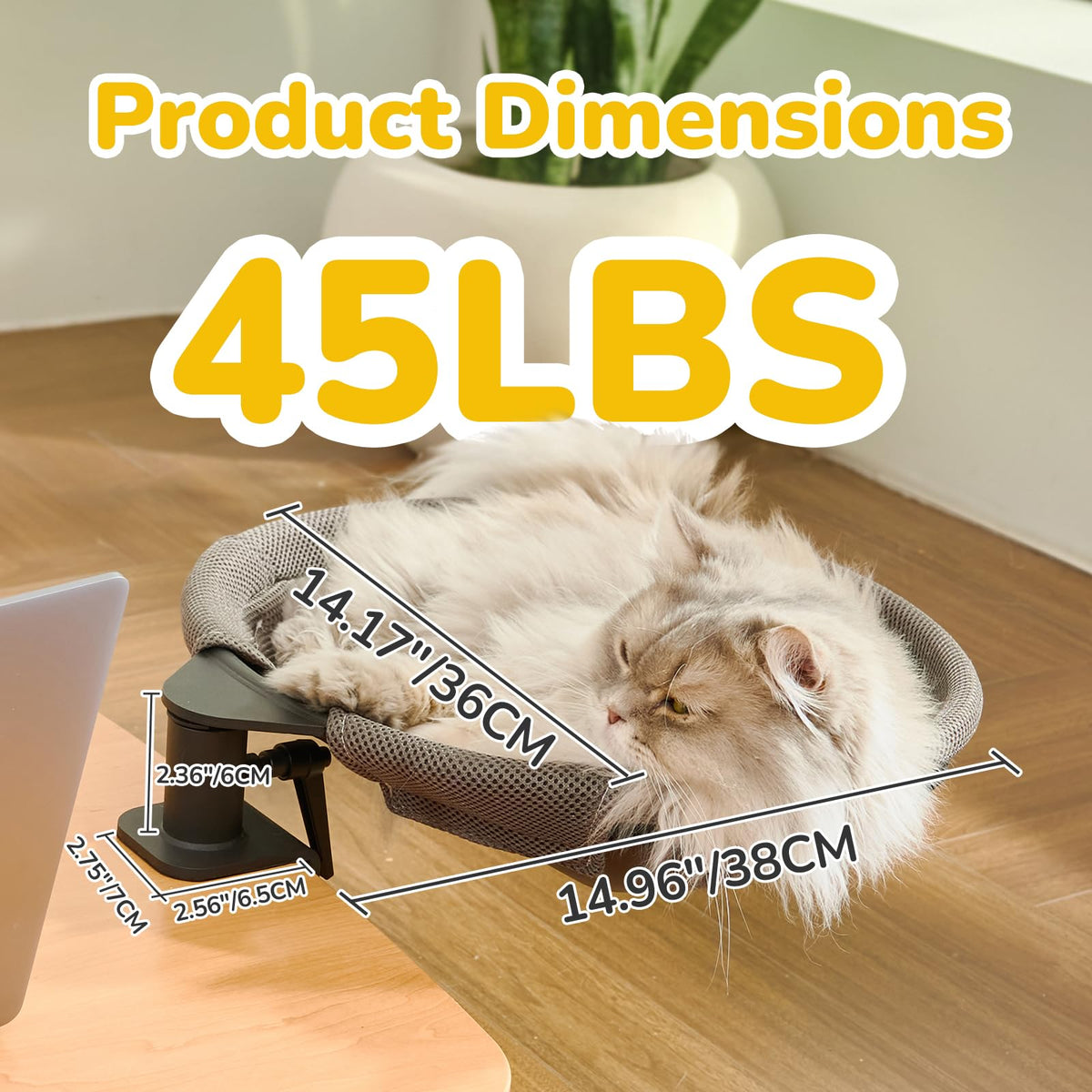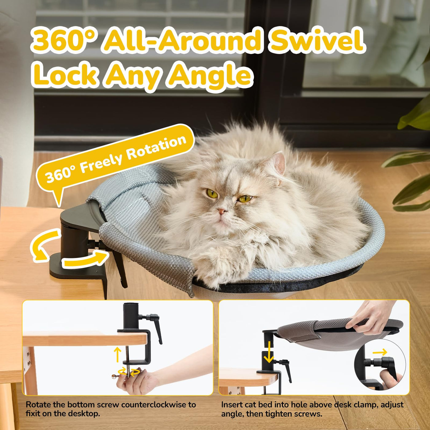 Cat Desk Bed - Desk Bed For Cats - 360 Rotation With 2 Different Washable Cat Bed Mat 14.96'' L X 14.17'' W, Pet Hammock Comfort