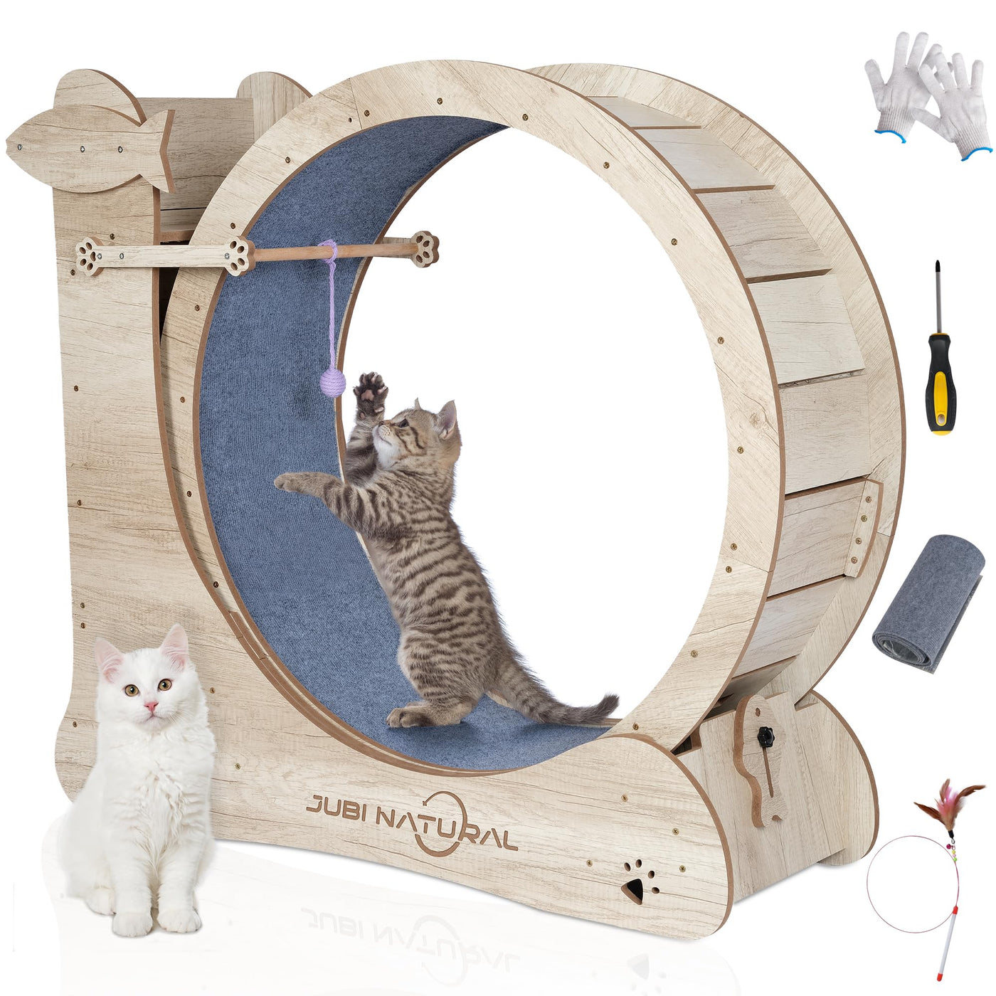 Cat Exercise Wheel, 40 Cat Running Wheels for indoor Cats with with Locking Mechanism, Cats Treadmill Wheels with Scratching Board and Teaser Toy, Cats Weight Loss and Health