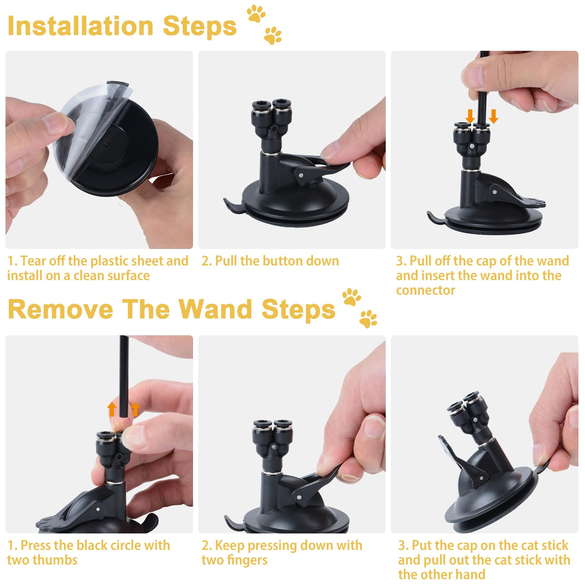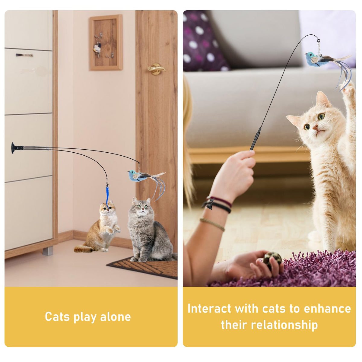 Cat Feather Toys, 14Pcs With 2 Slots Super Suction Cup, Detachable 2Pcs Wand & 11Pcs Replacement Teaser Refills With Bell, Inter