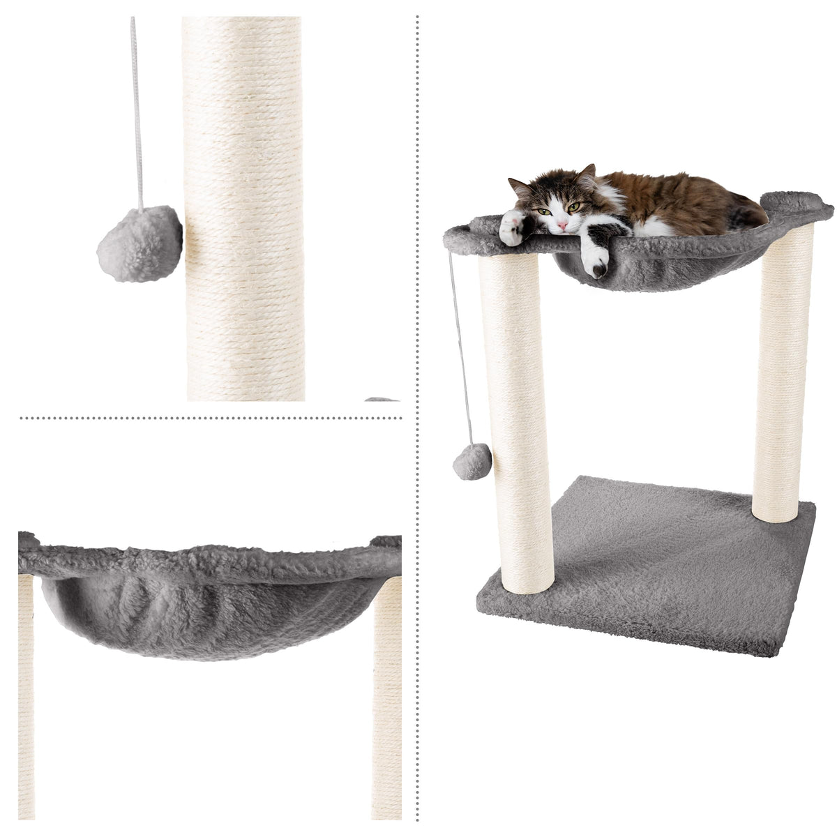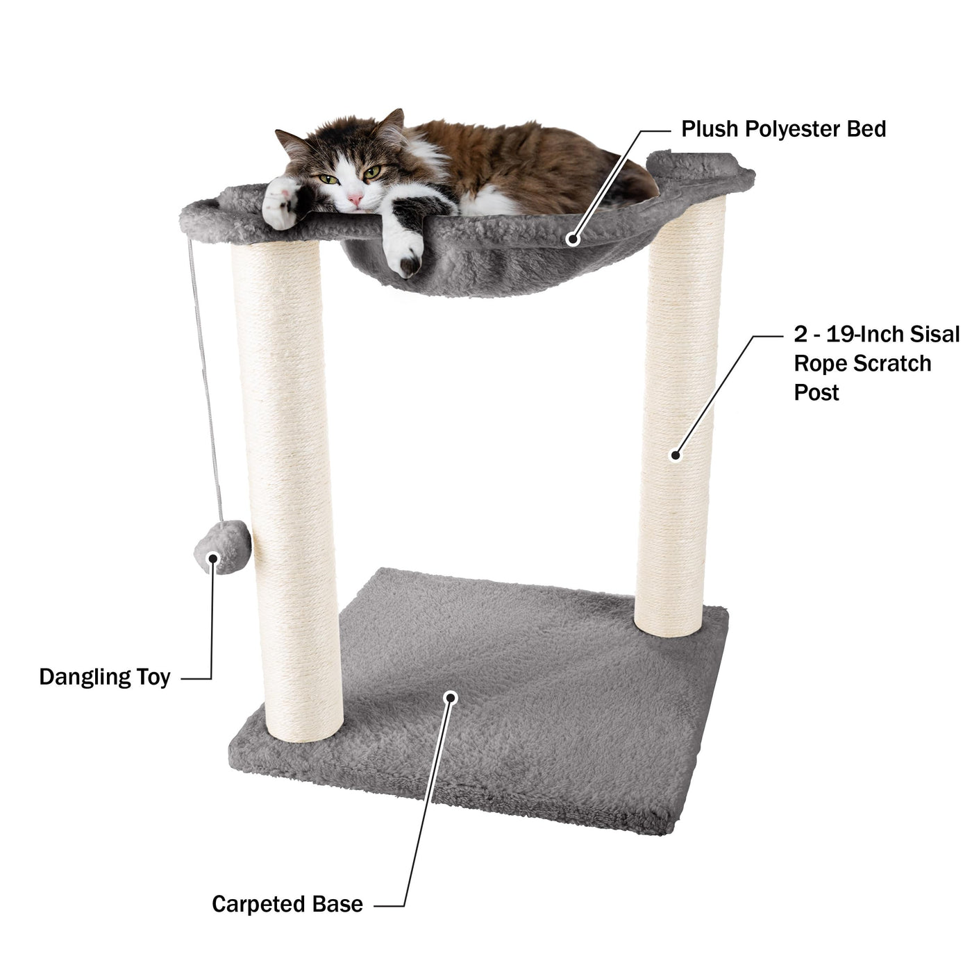 Cat Hammock With Scratching Posts For Indoor Cats - 19-Inch-Tall Cat Tree With Hanging Ball Toy For Adult Cats And Kittens By Pe