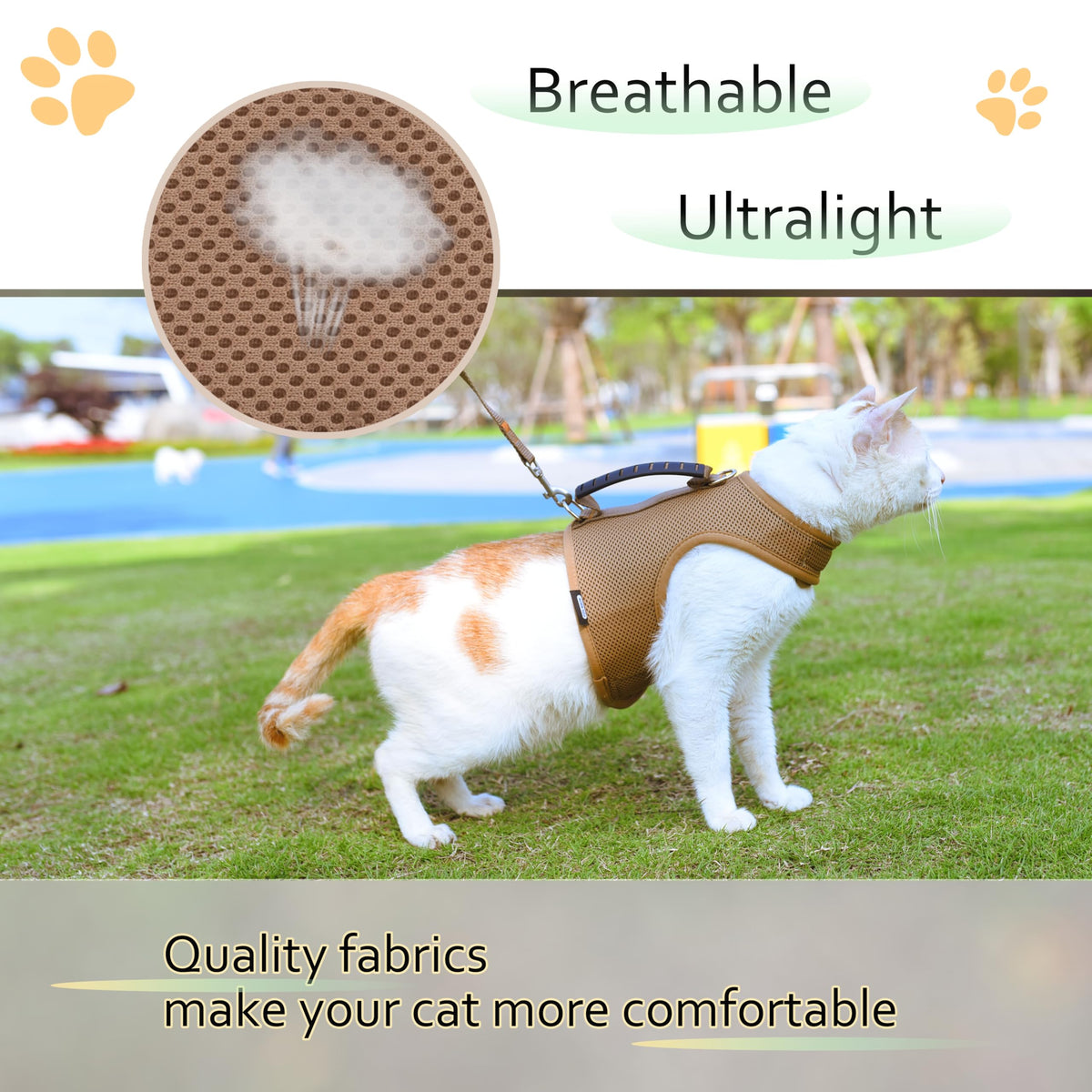 Cat Harness And Leash For Walking Escape Proof Breathable Mesh Fabric, Solid Brown, Xx-Large, Adjustable Cat Walking Jackets Wit