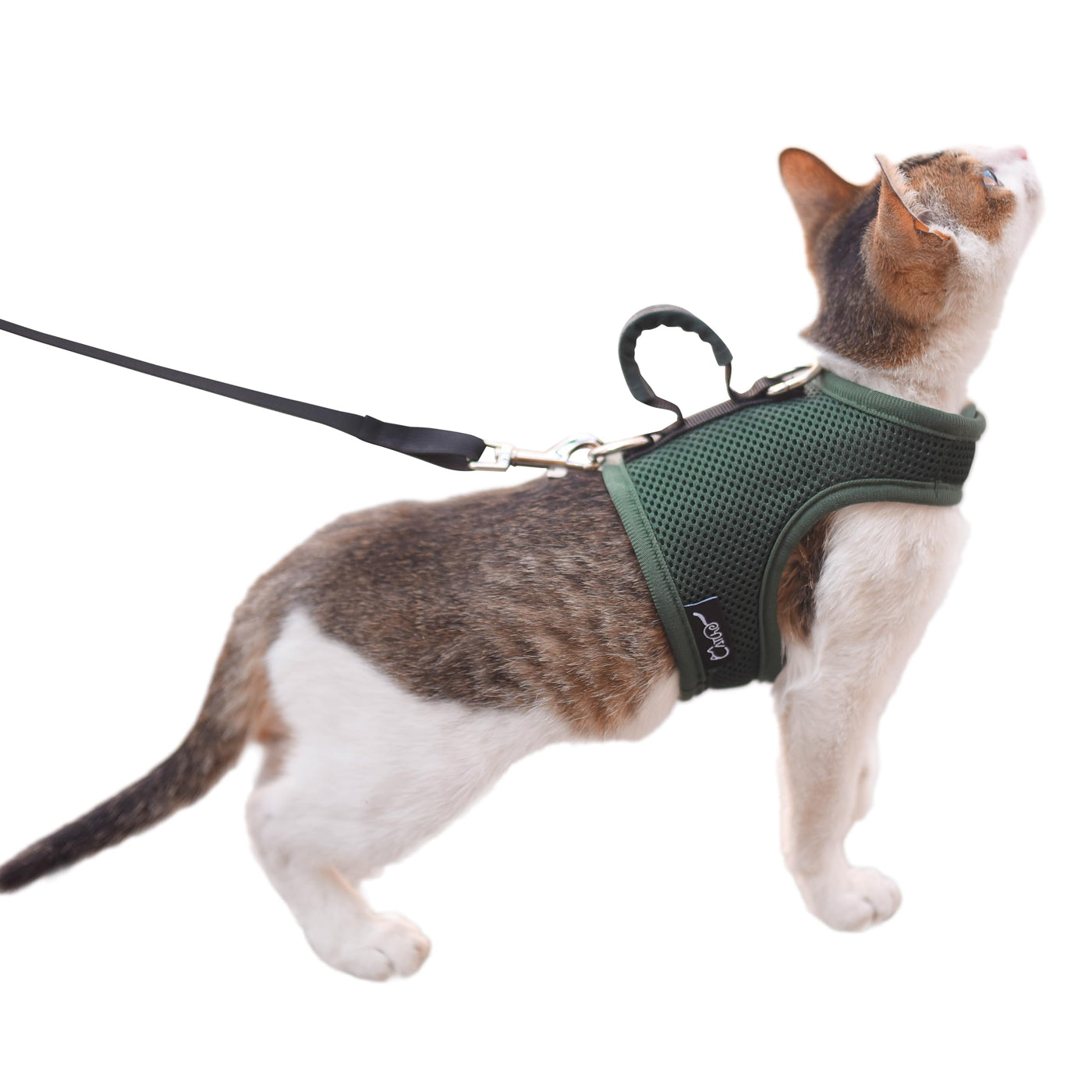 Cat Harness And Leash For Walking Escape Proof Breathable Mesh Fabric, Solid Green, Medium, Adjustable Cat Walking Jackets With