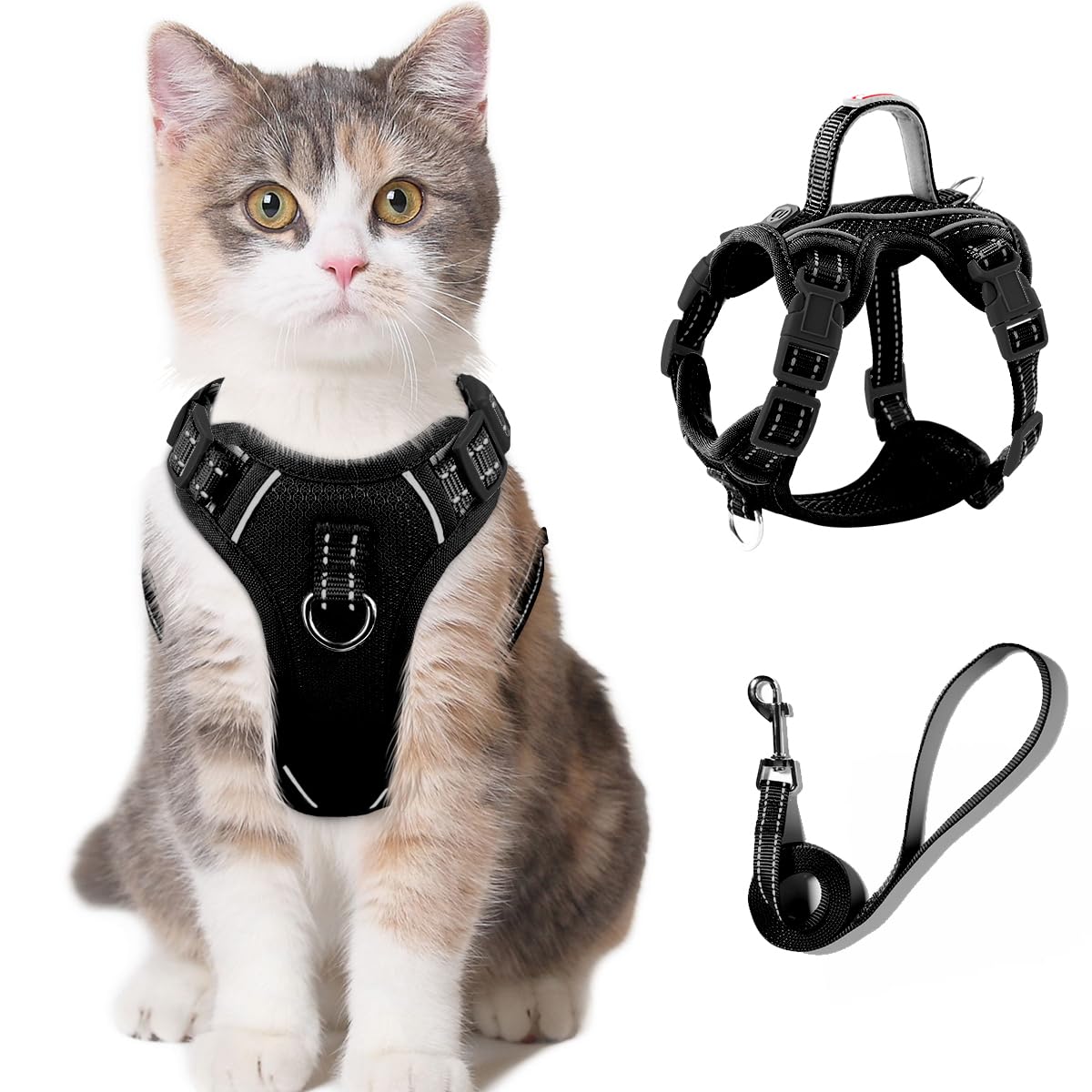 Soft & comfortable Design: Made of lightweight soft breathable Air-Mesh fabricThe 360A surround one piece vest harness can allows pressure to be evenly distributed across the neck and shoulders to prevent choking give your cat maximum comfort and safetyDurable mat HigherAVisibilityAandASafety:AReflectiveAmaterialsAprovidesAgoodAvisibilityAinAtheAdark AwhichAcanAbeAeasilyAseenAfromAaAdistance AensuringAtheAsafetyAofAfurryAfriendserialsAandAmeticulousAtechniquesAenableAtheAentireAharnessAtoAsatisfyAyourAkittenAsAdailyAactivities 360AWrap-StyleAEScAPEAPROOFAcatAHarness:ThisAdesignAisAsimpleAforAyouAtoAputAonAyourAcatAbutAdifficultAforAthemAtoAslipAoutAofAonAtheirAown AkeepingAthemAsafeAwhileAyouAreAoutAonAadventuresAtogether Easy to control and Use:Two D rings design provides you with two choices of tractionchoosing the right traction method according to different situations will help you to better control the catAlso Top Easy Lift Handle for extra safety and control IDATagAPocketAkeepsAdogAtagsAquietAandAeasilyAaccessibleKeepsAyourApetAsafeAandAensuresAyourApetAgetsAhomeAsafelyEliminatesAtheAjingling AjanglingAandAclanking
