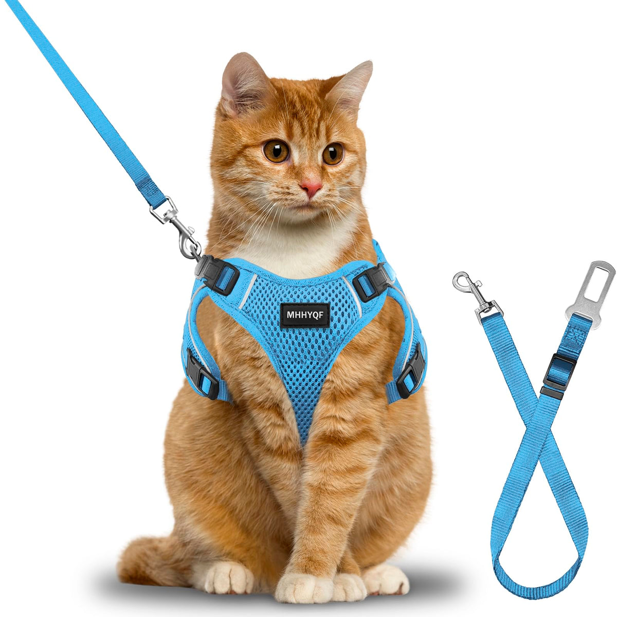 Four adjustable cat straps: Measure the cat s neck circumference and chest to determine the suitable cat strap. The adjustable cat strap design can accommodate most fat cats and prevent cats from getting caught by flexible adjustment of elasticity. Reserved hook on the chest: The reserved hook design can be used to hang a locator for your cat, making it easy for the cat to wander around and lose it. It can also be used as a decoration to hang a bell for the cat. Additional car seat belts: Curious cats jumping around in cars always make people worried and distract the driver s attention. Seat belt buckles allow cats to have their own seats. Reflective strip breathable cat harness: The soft and breathable cat harness has a reflective strip that can reflect light, so when visibility decreases, you can simply take out a flashlight and look around.