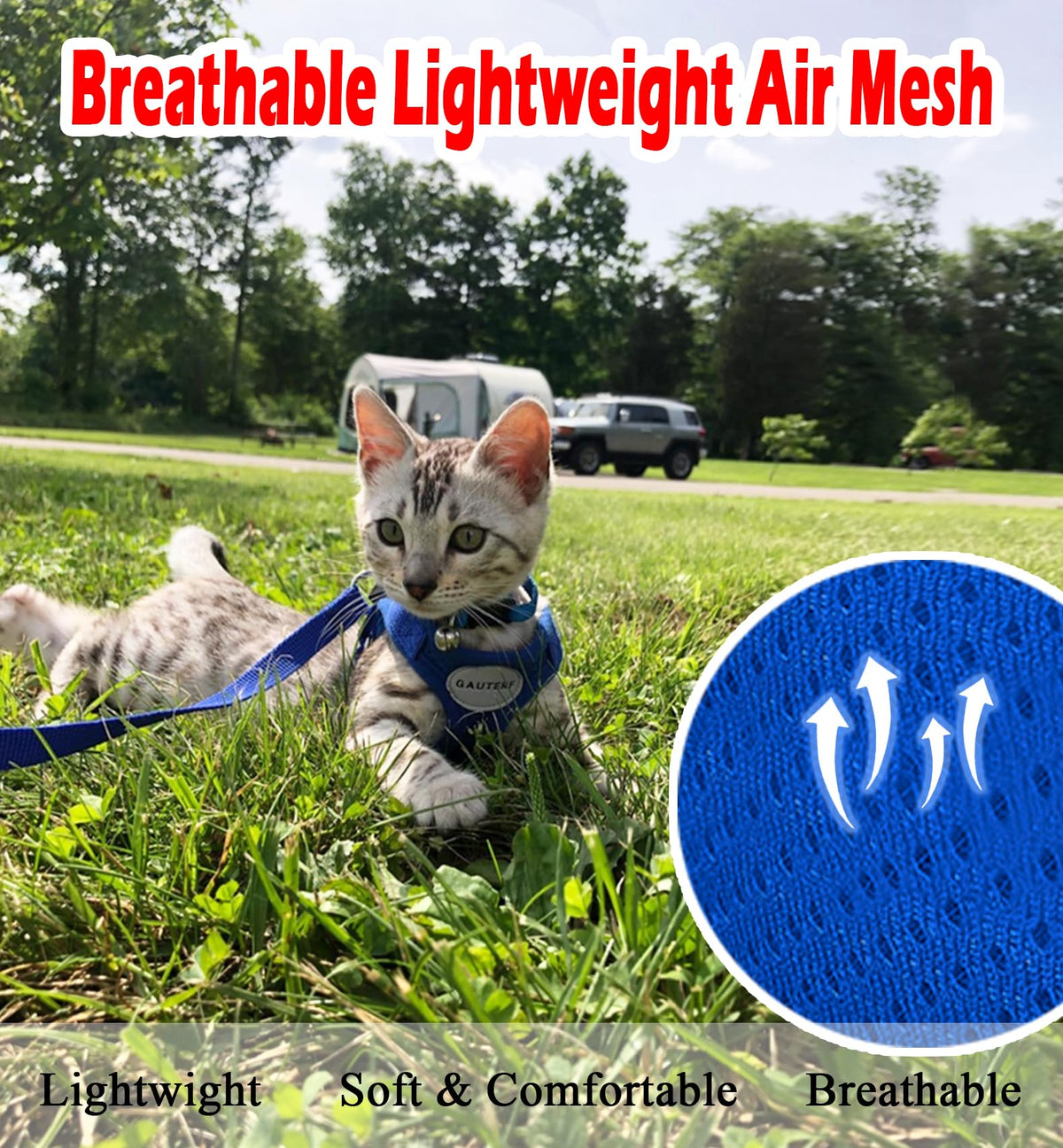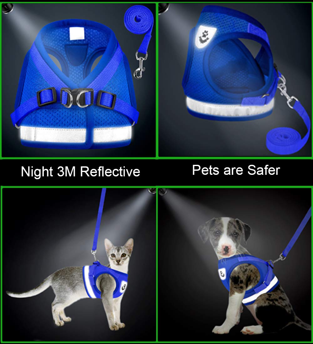 Cat Harnesses And Puppy Harness With Leashes Set, Escape Proof Cat Harness, Adjustable Reflective Soft Mesh Vest Fit Puppy Kitte