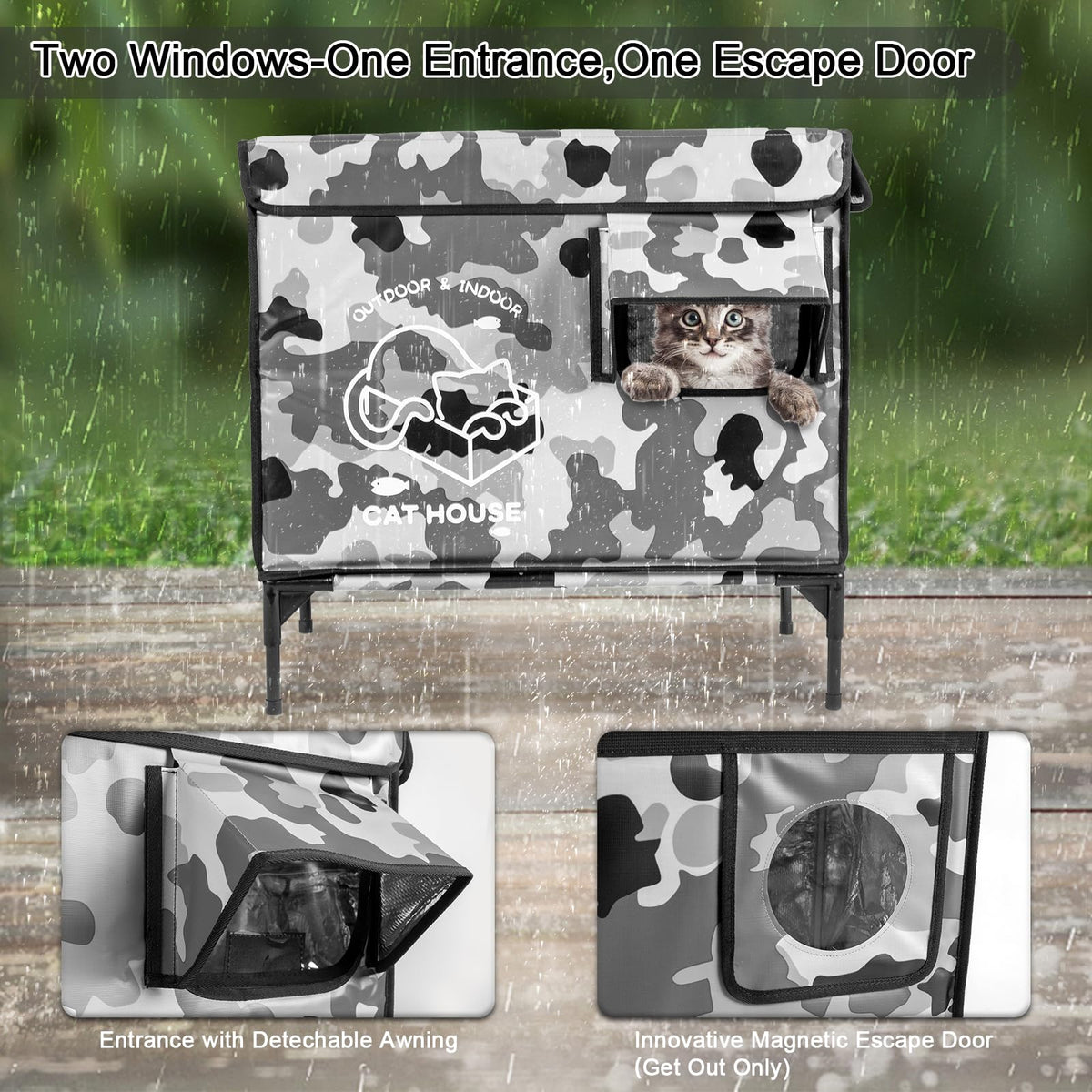 Cat House Outdoor, Elevated Feral Cat Shelter Weatherproof With Escape Door,Outside Waterproof Insulated Strayed Cat House For W