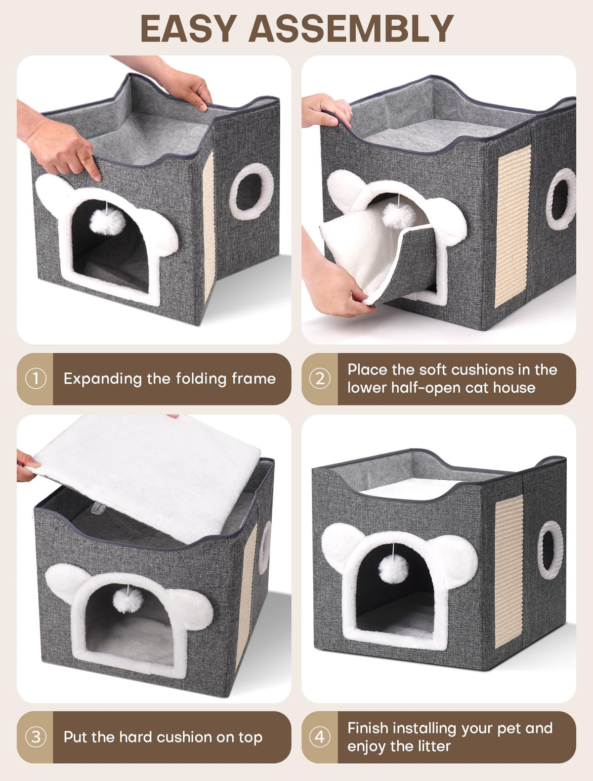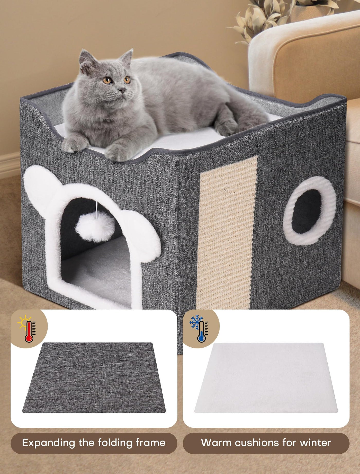 Cat Houses For Indoor Cats, Large Cat Cave With Fluffy Ball And Scratch Pad, Covered Cat Bed House, Foldable Cat Hideaway