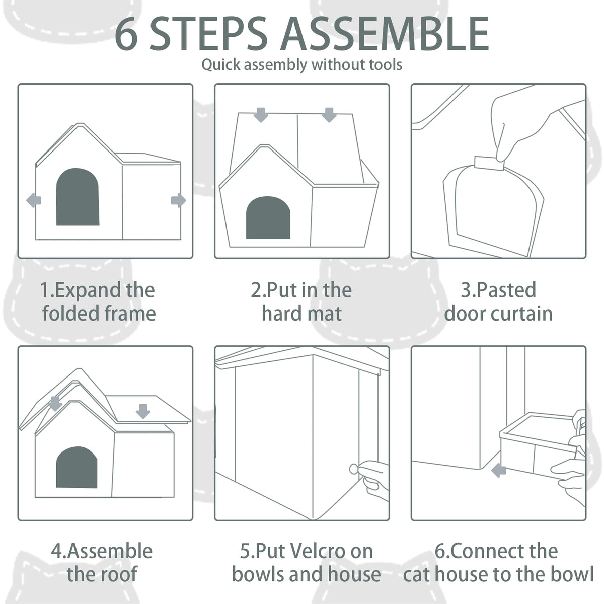 Easy Assembly and Maintenance: The outdoor cat house is designed for quick and straightforward assembly. Cleaning is hassle-free, thanks to the removable feeding bowl and a quick-wipe interior, allowing you to spend more quality time with your pets.