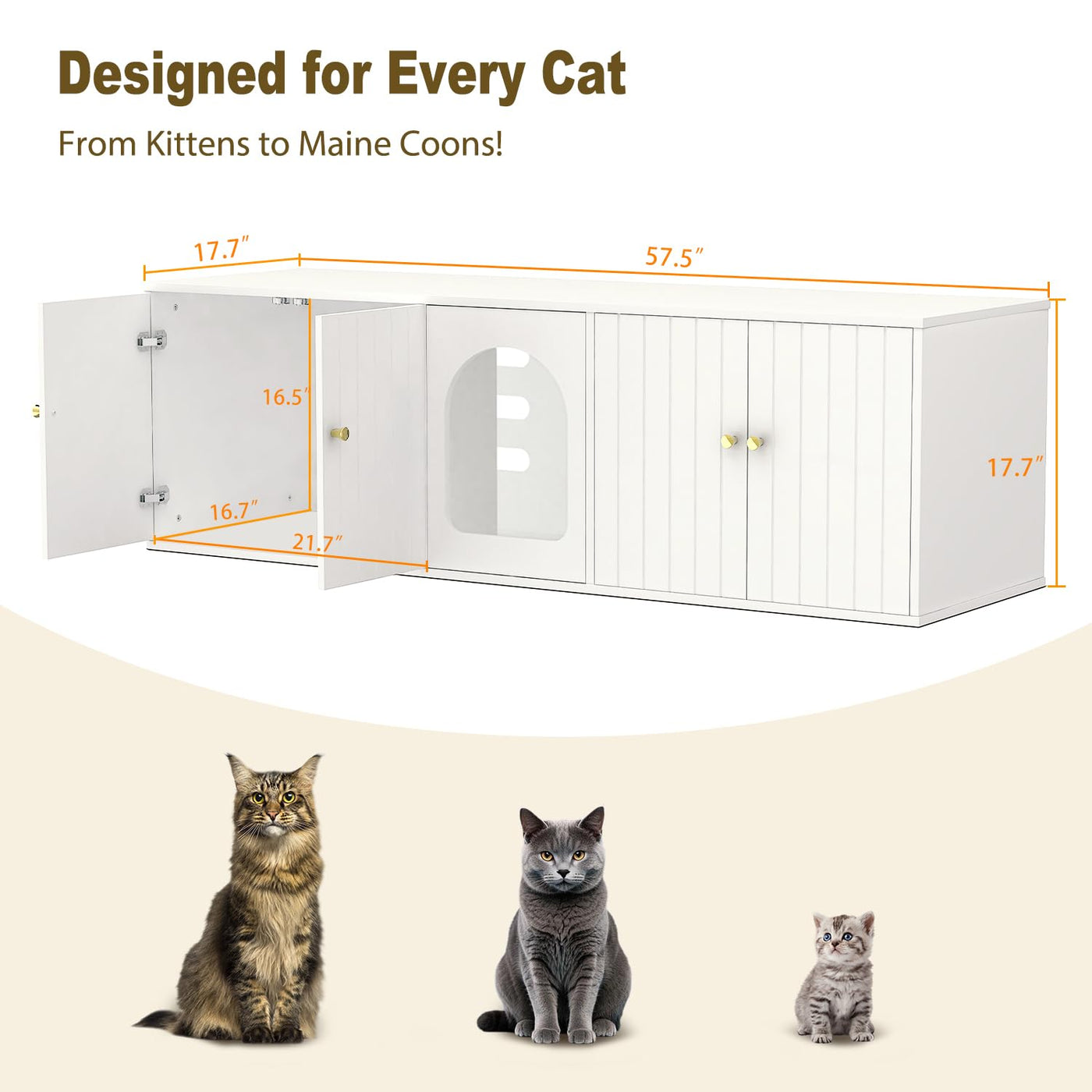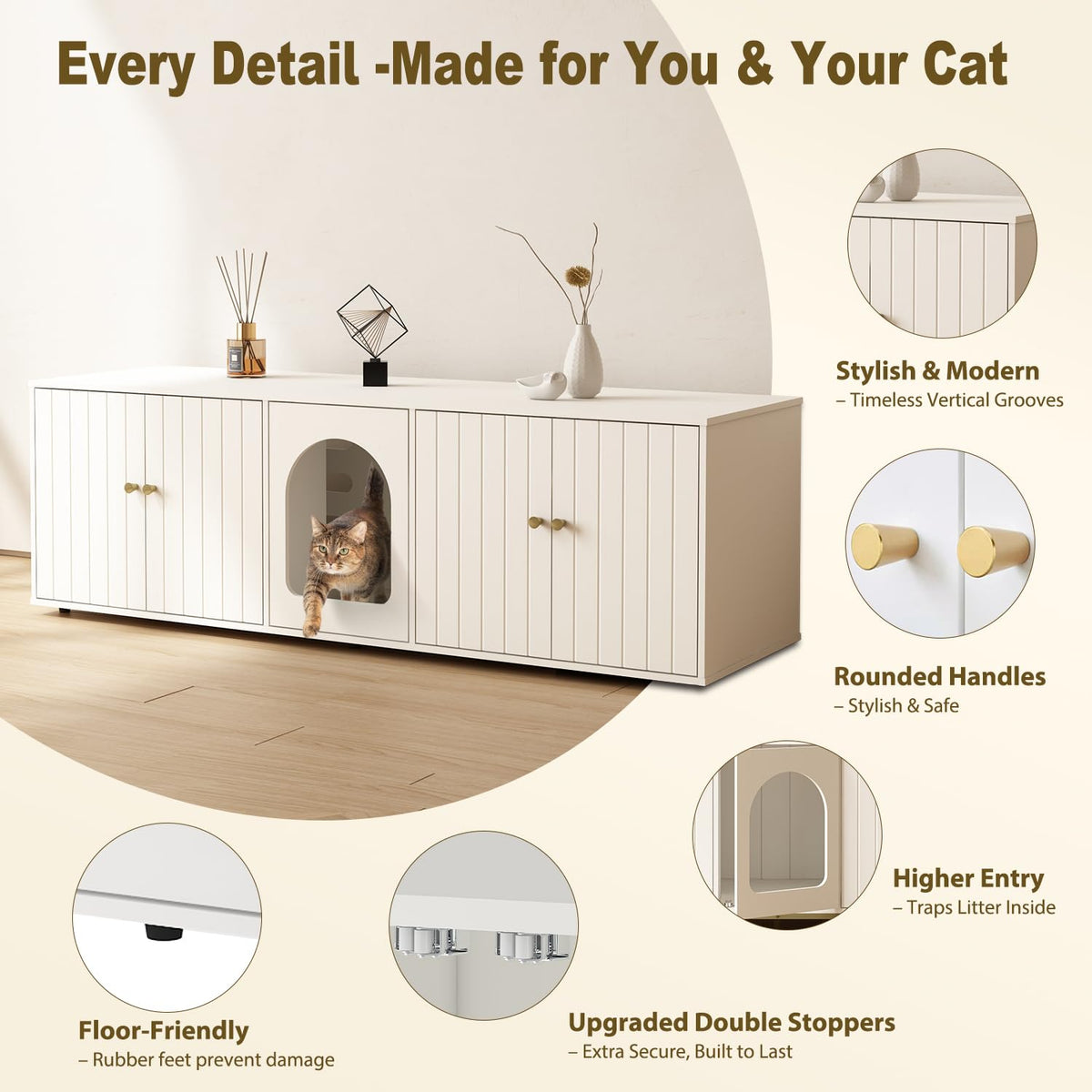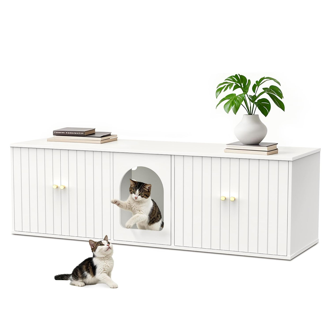 Cat Litter Box Enclosure For 2 Cats, Litter Box Furniture With Double Room, Central Entry, And Dual Use As Tv Stand For Living R
