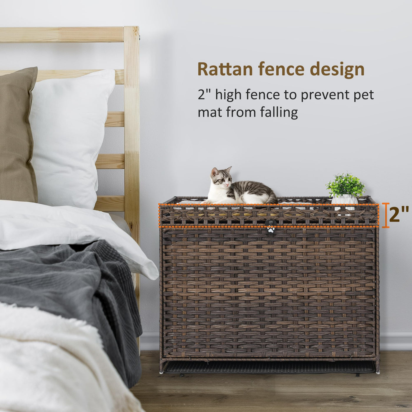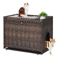 Cat Litter Box Enclosure With Soft Litter Mat; Hidden Cat Washroom Furniture With Door; Handwoven Rattan Cat House With Large Sp
