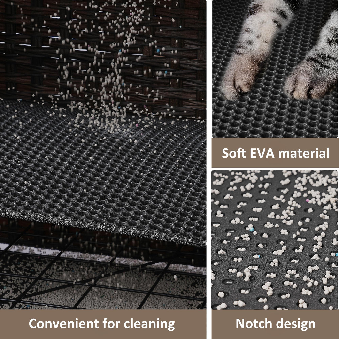 ?Easier Cat Care?The Cat Washroom Is Built With Soft Litter Mat Which Allows Cats To Walk Comfortably. More Importantly, The Litter Mat Is Designed With Large Holes So That The Scattered Cat Litter Can Drop On The Bottom Mat. And Then You Can Pull The Bottom Mat Out, Dump The Scattered Cat Litter, Saving You The Trouble Of Cleaning Up Scattered Cat Litter Every Day.