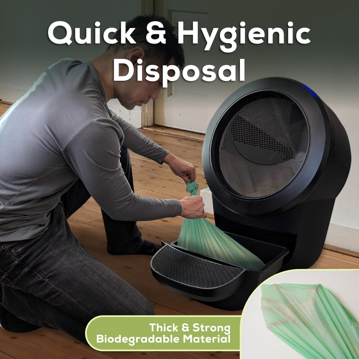 Cat Litter Box Liner 100% Compostable - Drawstring Close - Jumbo Size 36'' X 19'' - Tear & Leak Resistant - Ok Compost Home Cert