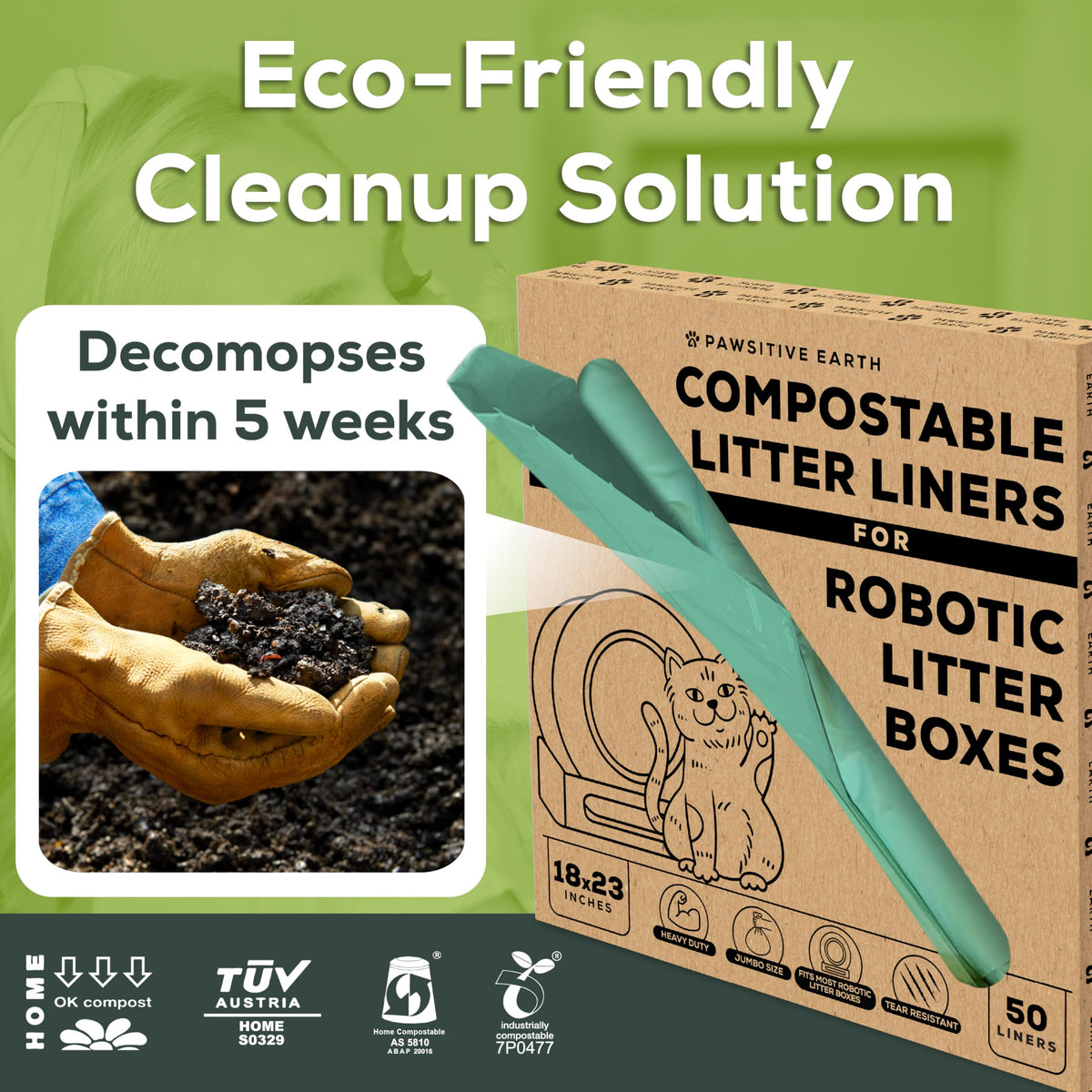 Pawsitive Earth Compostable Cat Litter Liners, A Convenient And Eco-Friendly Solution For Your Cat'S Waste Disposal Needs. Each Box Includes Six Liners Measuring 36 Inches By 19 Inches, Providing An Ample Supply To Keep Your Cat'S Litter Box Clean And Fresh. Designed To Perfectly Fit Cat Litter Boxes Up To 24'''' X 18'''' X 17'''', These Liners Offer A Secure Fit, Promoting A Clean And Environmentally Conscious Waste Disposal Solution. Certified By Ok Compost Home Under European Standards, Cat Litter Liners Guarantee 100% Biodegradability In Home Composting Facilities. The Thick And Strong Biodegradable Material Ensures Durability, Preventing Scratches, Tears, And Leaks For A Consistently Clean Litter Box. Featuring An Easy-To-Use Drawstring Design, These Liners Make Cleanup A Breeze. Simply Pull The Drawstrings On Both Sides, Tie Them Together, And Enjoy Quick And Convenient Waste Disposal.