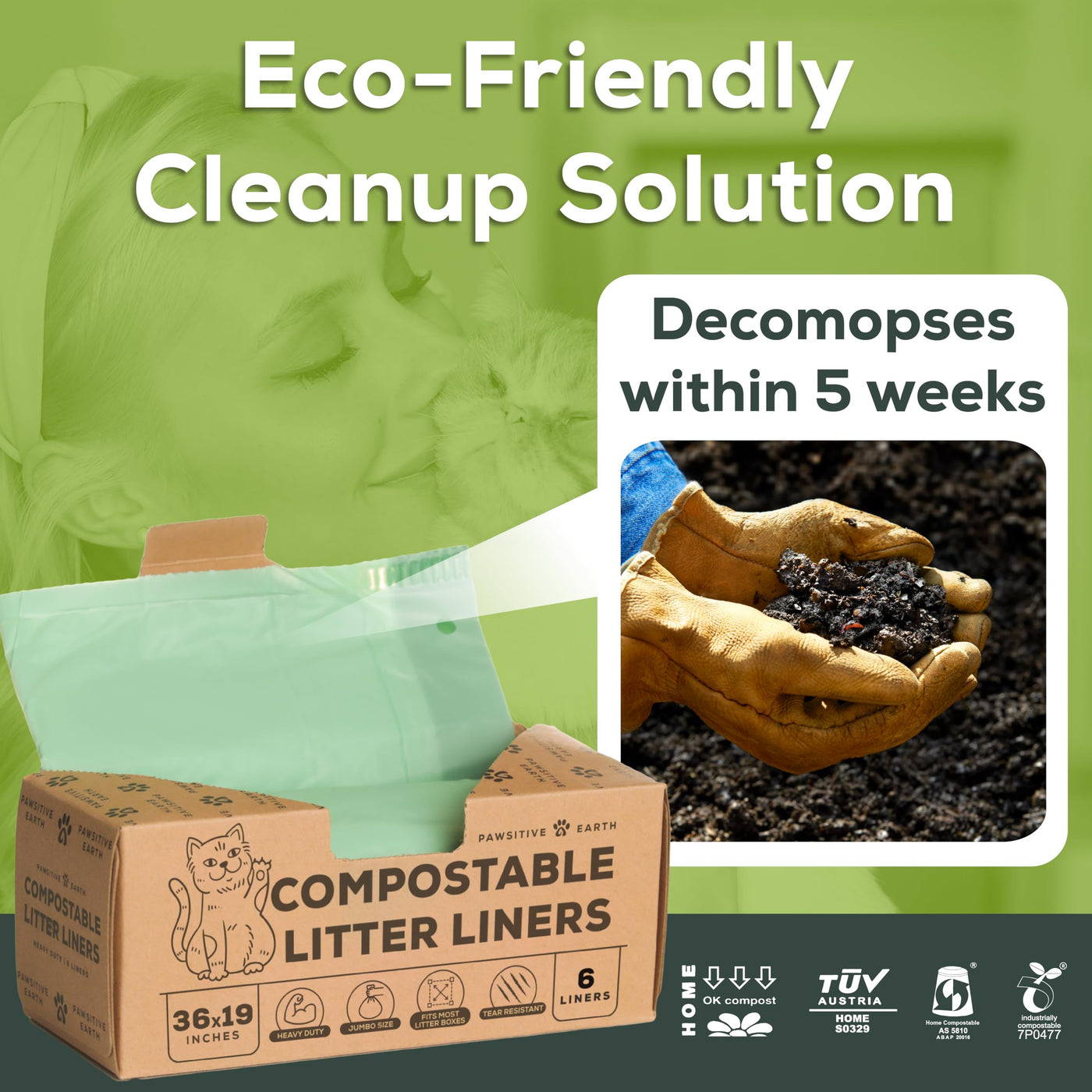 Pawsitive Earth Compostable Cat Litter Liners, A Convenient And Eco-Friendly Solution For Your Cat'S Waste Disposal Needs. Each Box Includes Six Liners Measuring 36 Inches By 19 Inches, Providing An Ample Supply To Keep Your Cat'S Litter Box Clean And Fresh. Designed To Perfectly Fit Cat Litter Boxes Up To 24' X 18' X 17', These Liners Offer A Secure Fit, Promoting A Clean And Environmentally Conscious Waste Disposal Solution. Certified By Ok Compost Home Under European Standards, Cat Litter Liners Guarantee 100% Biodegradability In Home Composting Facilities. The Thick And Strong Biodegradable Material Ensures Durability, Preventing Scratches, Tears, And Leaks For A Consistently Clean Litter Box. Featuring An Easy-To-Use Drawstring Design, These Liners Make Cleanup A Breeze. Simply Pull The Drawstrings On Both Sides, Tie Them Together, And Enjoy Quick And Convenient Waste Disposal.