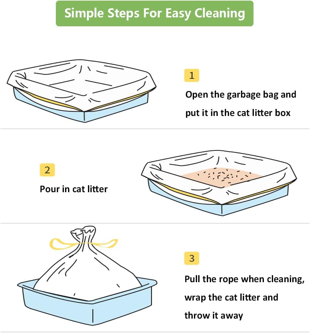 12 Count Small Cat Litter Bags: Pack Includes 12 Liners With Ties And Suitable For Cat Litter Boxes Less Than 22.8 Inches In Combined Length And Width, 29.13*17.71 Inch Cat Litter Bags.Cat Litter Box Liners: Scratch-Resistant, Tear-Resistant And Waterproof, No More Urine Or Rubbish Seeping Into Your, Empty The Cat Litter Box Without The Mess And Dust, Easy And Hygienic.Strong And Durable: Made Of High Quality Materials, Less Prone To Puncturing Or Tearing, Leak Proof And Extra Durable, Contains No Perfumes Or Deodorants.Convenient Cleaning: Three Simple Steps To Clean Up, Save Your Cleanup Time. Litter Box Liner With Drawcord Handle, When Changing, Simply Pull The Drawstring To Clean Up. No More Messes! No More Scrubbing! Perfect For The Busy Household Of Cat Lovers.High Quality Trash Bags & Services: Our Small Cat Litter Box Liners Bags Have Related Certification, Can Be Used With Confidence. And If Youre Not Satisfied With Our Cat Litter Bags, Contact Us Any Time. Don'T Worry, We Will Try Our Best To Help You Solve The Problem.