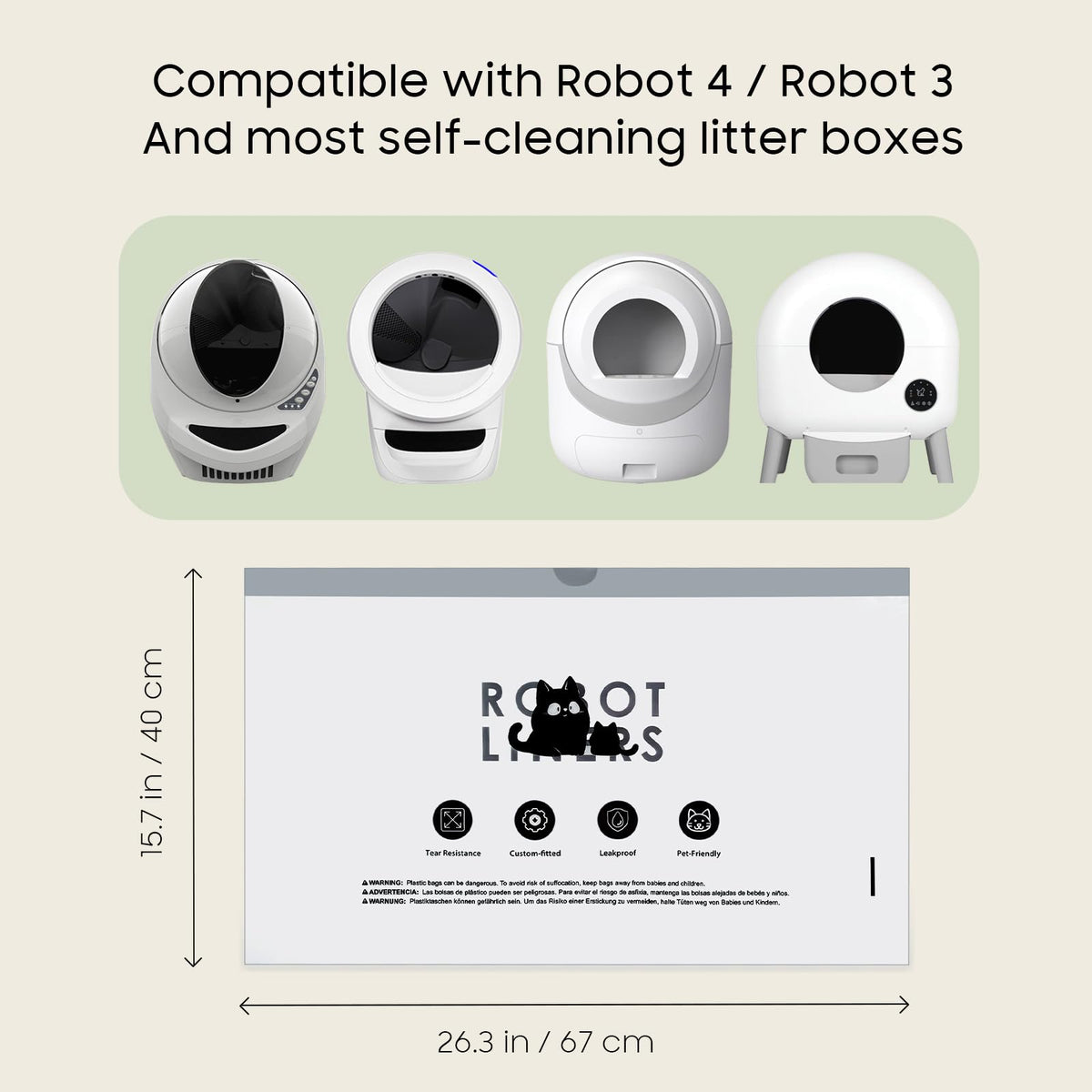Effortless Clean-Up With Litter Box Robot Waste Bagskeep Your Home Clean And Odor-Free With These Premium Litter Box Robot 4 And 3 Waste Bags. Designed For A Perfect Fit With Litter Box Robot And Other Self-Cleaning Litter Boxes, These Cat Litter Bag Liners Offer Durability And Convenience. Made From Thick, Tear-Resistant Material, They Are Leak-Proof And Odor-Resistant, Ensuring A Mess-Free Experience.The Drawstring Design Allows For Easy Sealing And Disposal. Simply Lift, Tie, And Toss The Bag, Keeping Your Hands Clean And Your Home Fresh. These Liners Are Designed To Be Compatible With Litter Box Robot 3 Accessories And Litter Box Robot 4 Accessories, Providing A Snug, Hassle-Free Fit.
