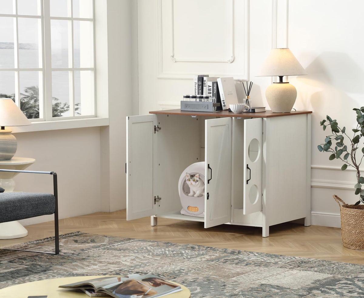 Cat Litter Robot Enclosure, Litter Enclosure For Litter Robot 3/4,Cat-Exclusive Entrace For Dog Proof And Fun,Charging Station,Locks Added For Cat,Large Indoor Cat House,Antique White