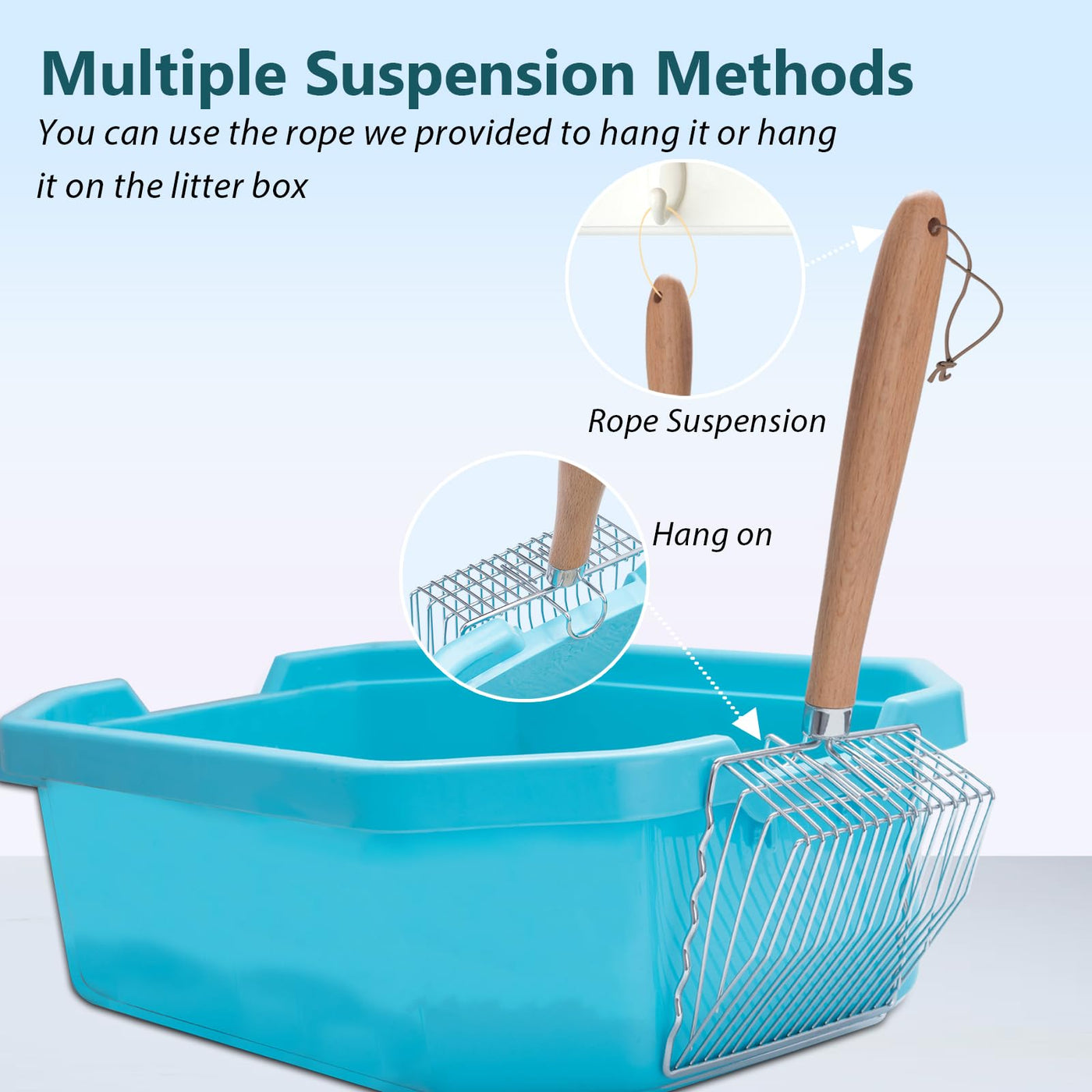 Hanzee Stainless Steel Cat Litter Scoop With Hook And Hole Designed With Optimal 0.3-Inch Gap Size, This Scoop Allows You To Easily Sift And Scoop Cat Litter, Swiftly Removing Clumps To Maintain A Clean Litter Box. Ideal For Households With Large Cats Or Multiple Feline Friends, Its Durable Metal Construction Ensures Long-Lasting Performance. Ergonomically Designed For Comfort And Efficiency, This Scoop Comes With A Convenient Stand For Hanging Near The Litter Box. Compatible With All Types Of Cat Litter, It Offers Multifunctional Use For All Your Cleaning Needs. The Design Of The Extended Handle Makes It Easier For You To Clean Cat Litter. The Newly Upgraded Handle Is Longer Than The Ordinary Cat Litter Scoop On The Market, With A Length Of 9.8 Inches, Making It More Suitable For Cleaning Cat Litter Boxes