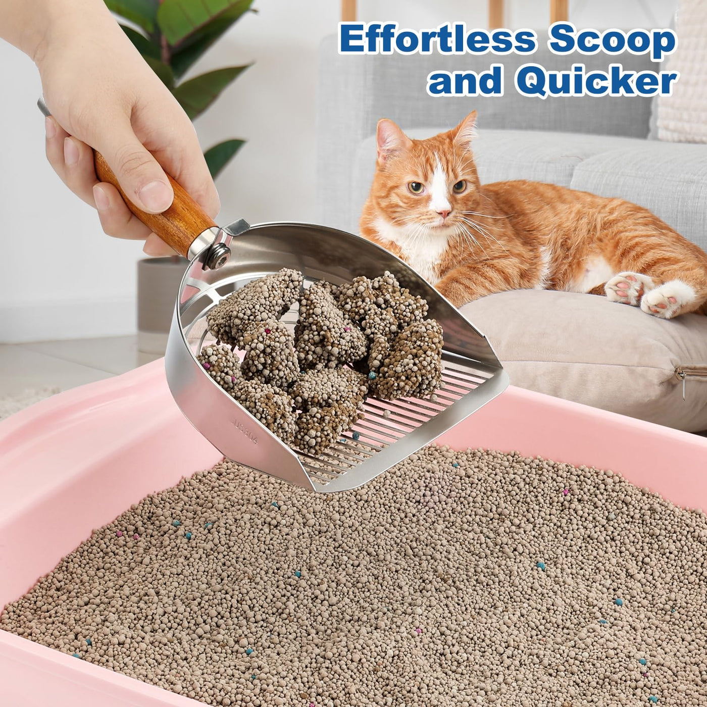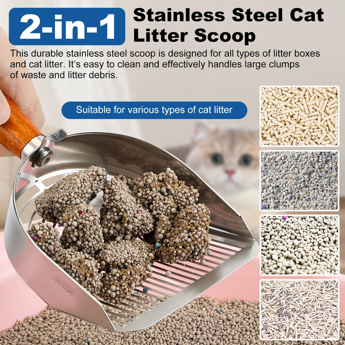 Keep Your Cats Litter Box Clean And Fresh With Our Big Cat Litter Scoop! Designed Specifically For Larger Cats And Multi-Cat Households, This Heavy-Duty Metal Cat Litter Scoop Makes Litter Maintenance Quick And Efficient. Key Features: Durable Stainless Steel Construction: Made From High-Quality Stainless Steel, This Scoop Is Built To Last. It Resists Rust And Corrosion, Ensuring It Maintains Its Sleek Appearance Even After Repeated Use. This Stainless Steel Litter Scoop Is A Must-Have Among Cat Accessories For Indoor Cats. Fast Sifting Design: The Innovative Sifting Litter Box Mechanism Allows You To Separate Clumps From Clean Litter Quickly. The Strategically Placed Holes Ensure That Only The Clean Litter Falls Back Into The Box, Minimizing Waste And Mess. This Makes It An Excellent Litter Scooper For Busy Cat Owners. Deep Shovel Design: The Deep Shovel Design Allows You To Easily Lift And Remove Larger Clumps Of Waste, Making It Perfect For Big Cats Or Multiple Cats. Say Goodbye To The Struggle Of Cleaning Up With This Effective Litter Scoop! Ergonomic Handle: The Scoop Features An Ergonomic Handle That Provides A Comfortable Grip, Reducing Hand Fatigue During Use. Clean Your Litter Box With Ease, Even During Long Cleaning Sessions. Its A Great Cat Scooper For Litter Box Management. Convenient Hook For Storage: The Built-In Hook Allows For Easy Hanging And Storage, Keeping Your Scoop Within Reach And Your Cleaning Area Tidy. This Litter Scooper With Holder Is Designed For Convenience. Easy To Clean: The Smooth Stainless Steel Surface Makes Cleaning A Breeze. Rinse With Water Or Wipe Down With A Cloth After Use. This Metal Litter Scoop Is Not Only Efficient But Also Easy To Maintain. With Its Robust Design, This Cat Litter Box Scooper Is Perfect For Any Cat Owner. Whether You Need A Pooper Scooper Cat Litter Or A Litter Box Scoop, This Versatile Tool Meets All Your Needs. Dont Miss Out On This Essential Cat Must-Have For Your Cat Supplies!