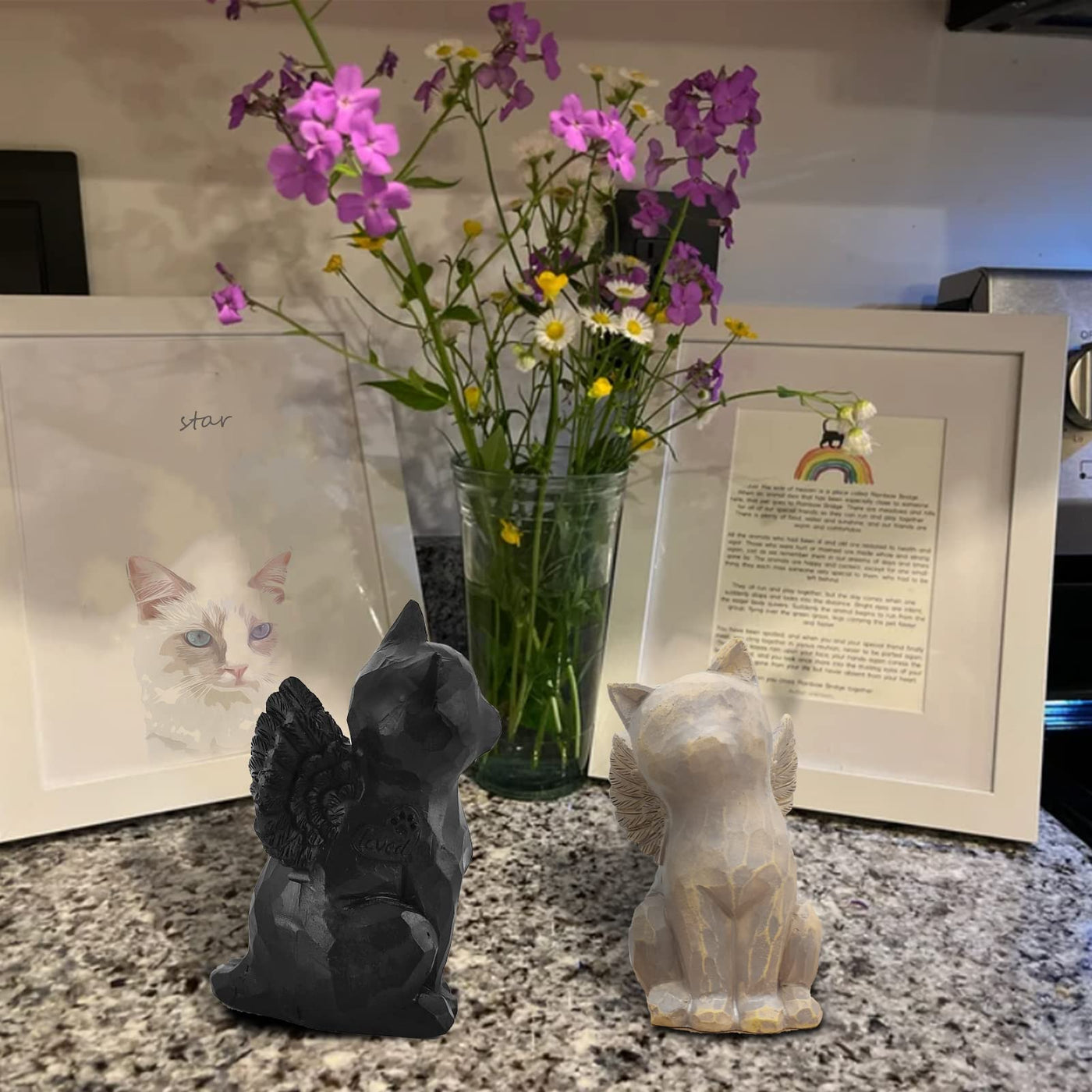 Cat Memorial Gifts, Loss Of Cat Sympathy Gift, Angel Cat Figurine Rainbow Bridge Pet Memorial Gifts, Cat Gifts For Cat Lovers, Cat Remembrance Grief Condolence Bereavement Gifts, Black Cat Decor