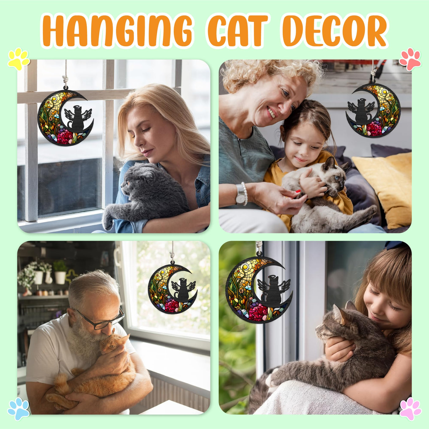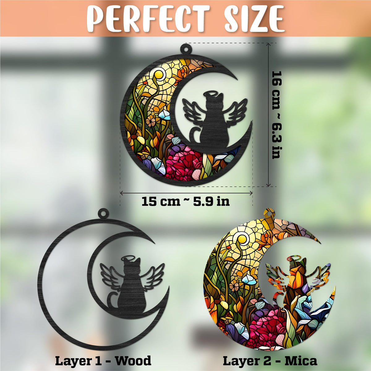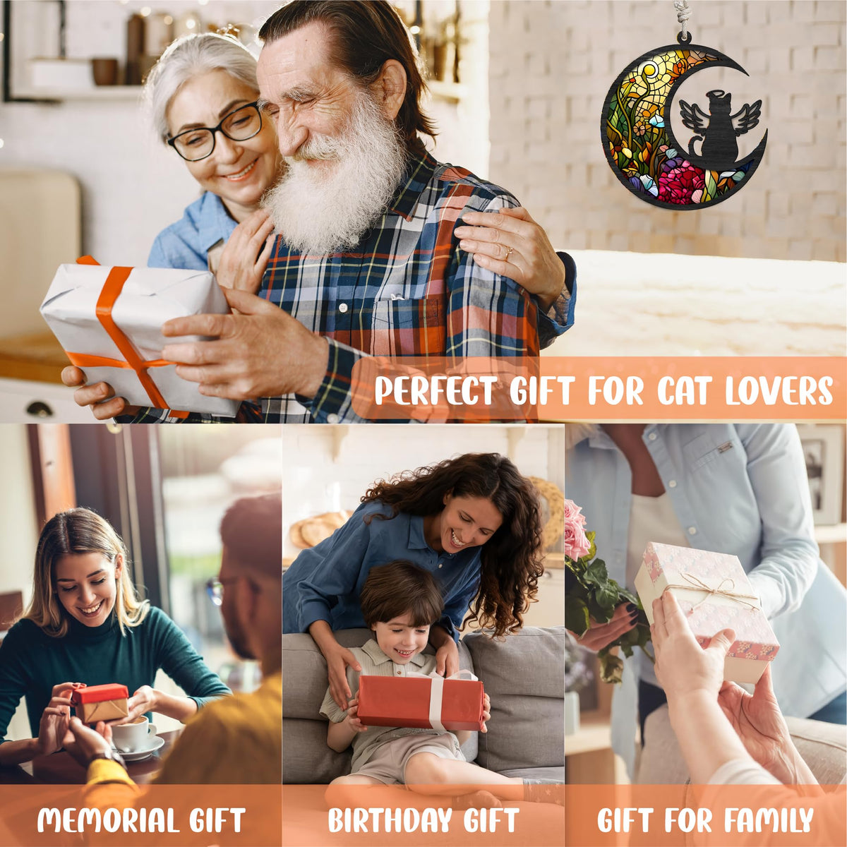 Cat Memorial Suncatcher For Windows Stained Glass,Pet Sympathy Gift To Memorialize The Loss,Unique Angel Cat Statue Suncatchers With Personalized Decorations