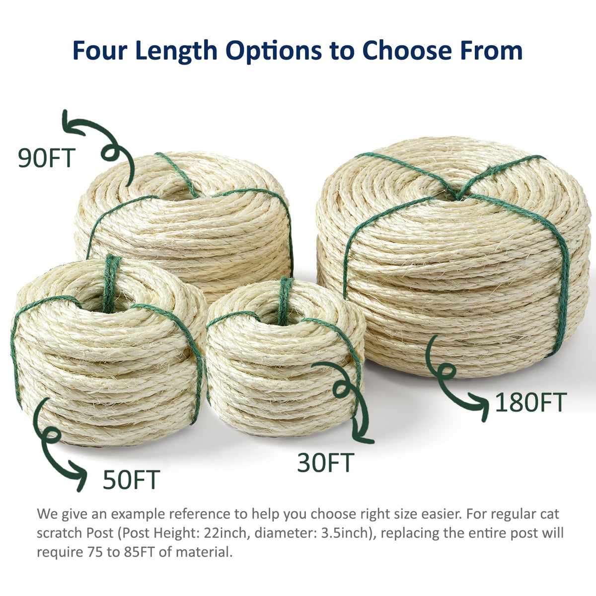 Cat Natural Sisal Rope For Scratching Post Tree Replacement, Hemp Rope For Repairing, Recovering Or Diy Scratcher, White, 50Ft