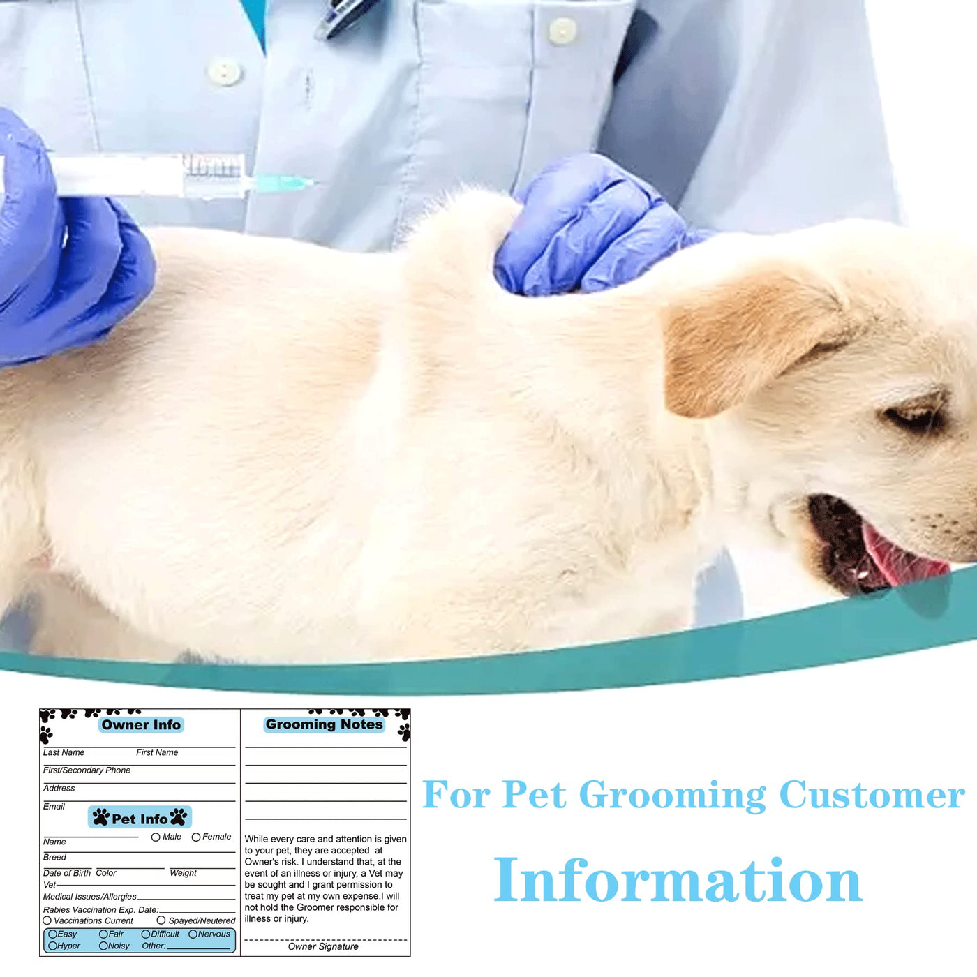 Q: Are the grooming cards suitable for veterinary use?A: Yes, these grooming cards are ideal for use by veterinarians, pet groomers, and shelters, as they help record important pet visit details.