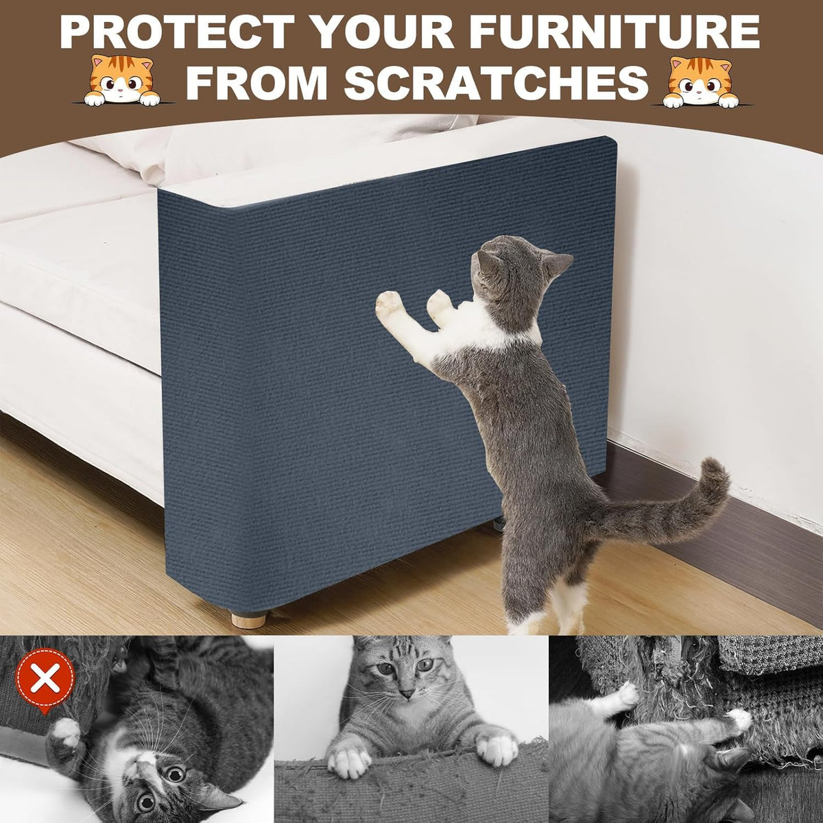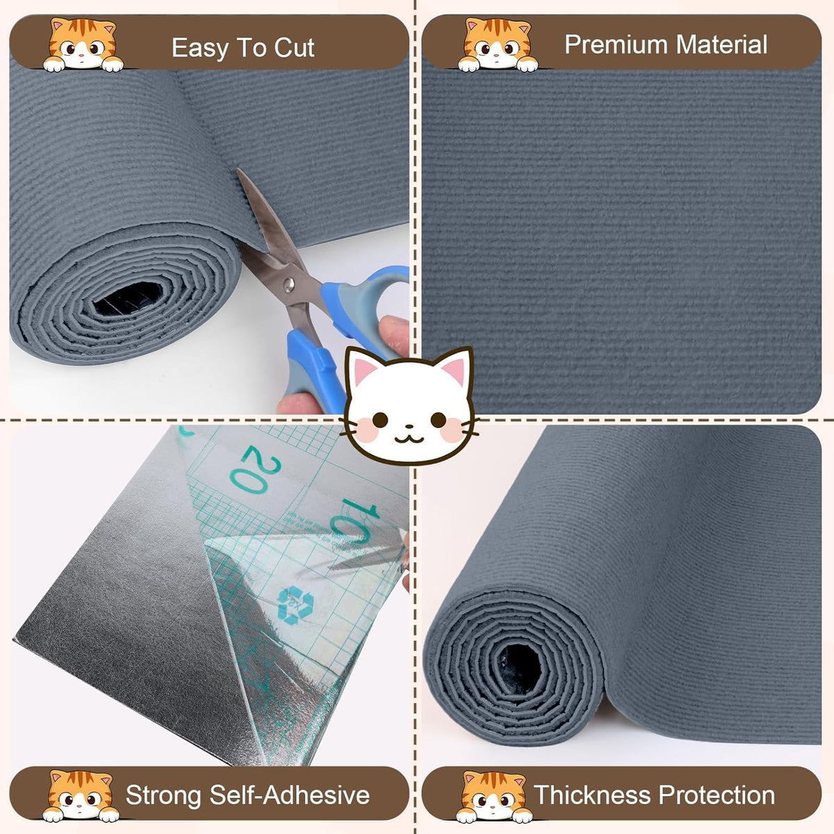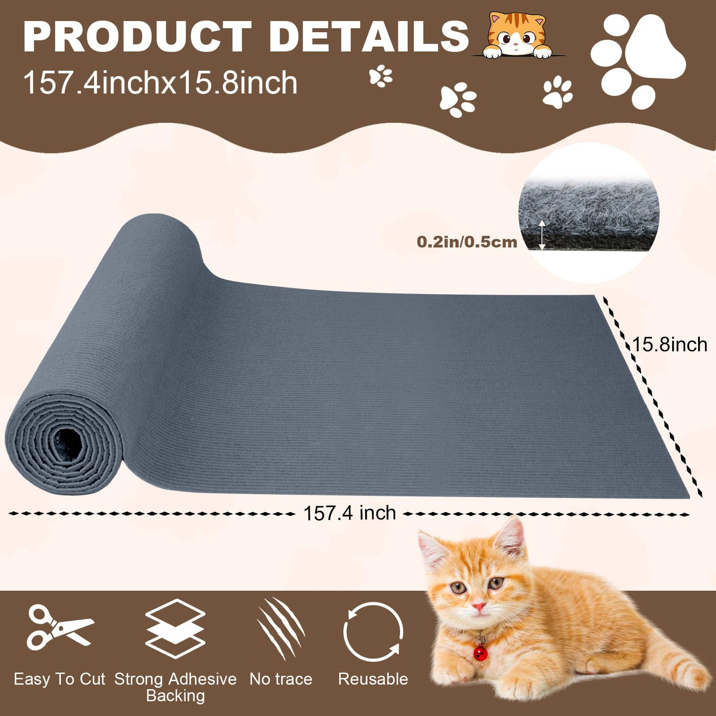 This cat scratch mat is made from premium, soft felt with a striped design. Its suitable for use on various surfaces like wood, leather, fabric, and tile, making it a versatile protector for furniture. The mat features a strong self-adhesive backing, ensuring it stays securely in place without slipping. Measuring 157.4x15.8, it can be easily cut to fit your desired size for use on shelves, cat towers, or couches. Perfect for creating a scratching area for your cat, it helps protect furniture from scratches while offering comfort and play.
