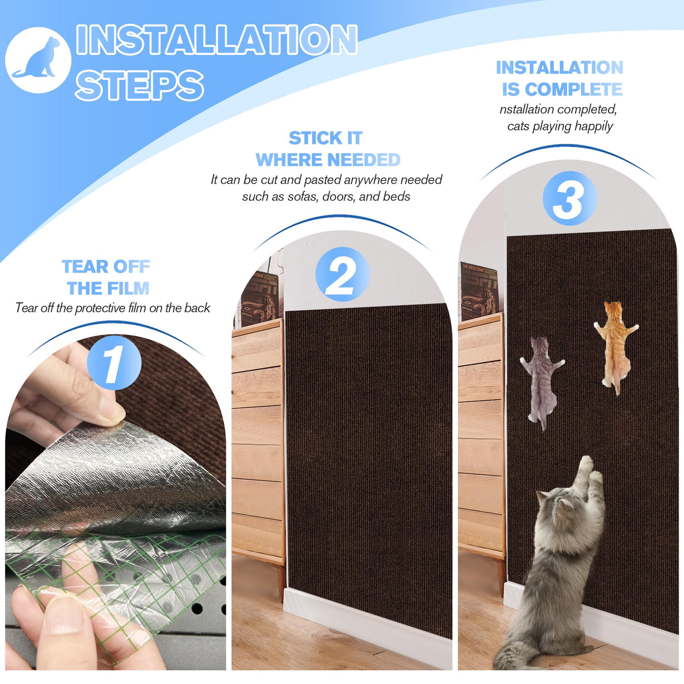 Cat Scratch Mat 5Pack,39.3'X15.7' Cat Scratching Mat Self-Adhesive Carpet Mat Trimmable, Cat Wall Shelves, Cat Scratcher Board