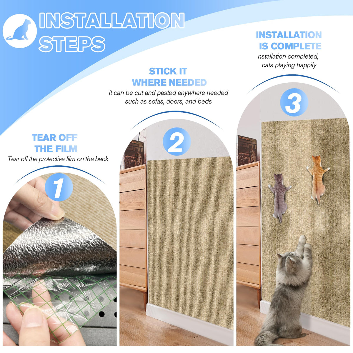Cat Scratch Protector 2Pack,39.3''X15.7'' Cat Scratch Mat Self-Adhesive Carpet Mat Trimmable,Cat Wall Shelves Diy Cat Pad Furnit