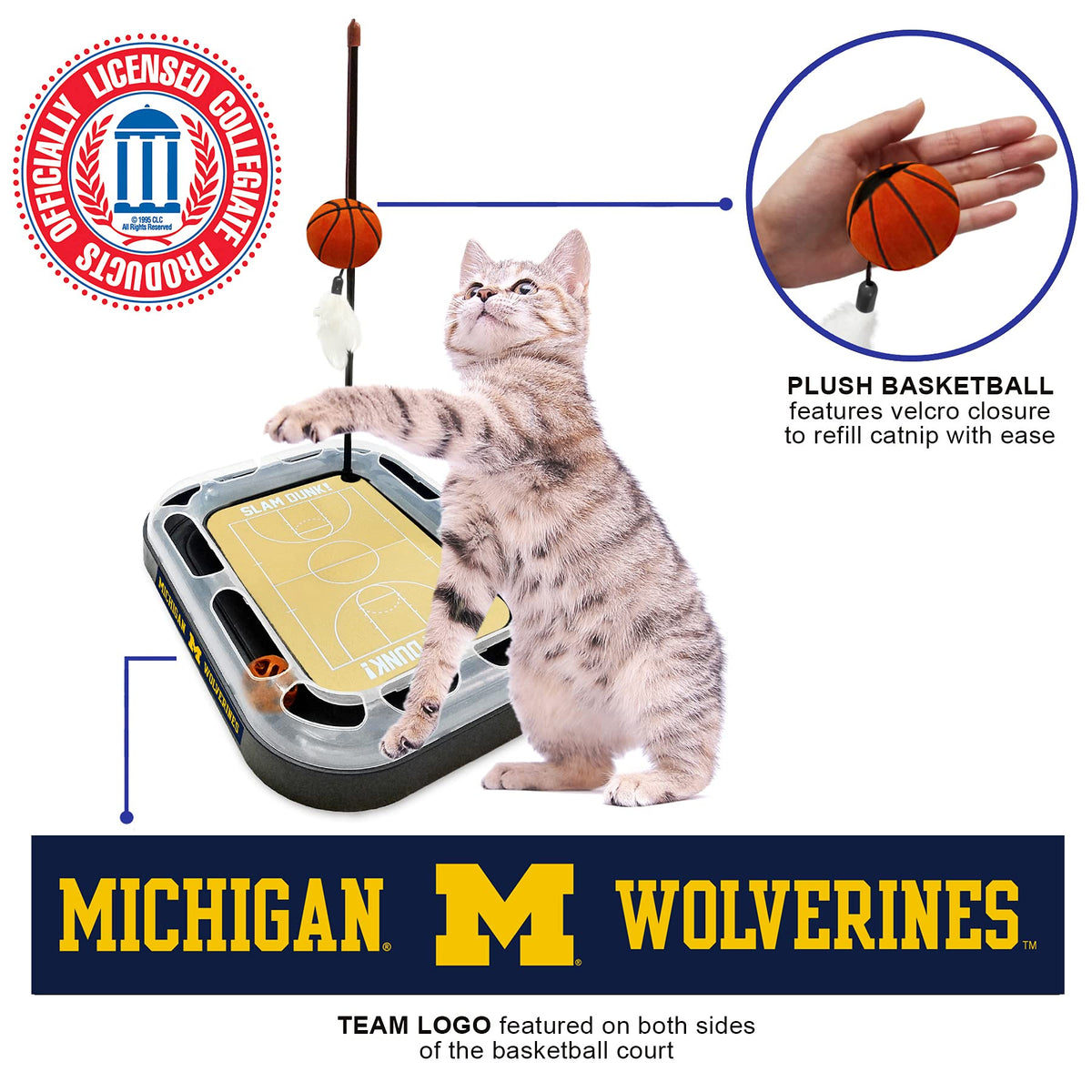 Cat Scratch Toy Ncaa Michigan Wolverines Reversible Basketball Court Felt/Cardboard Cat Scratcher Toy. Interactive Cat Ball Bell