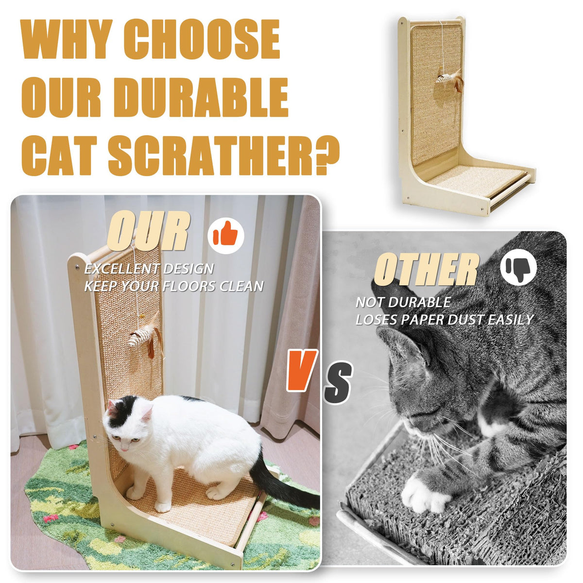 L-Shape Scratcher: Happy and healthy cats start with natural scratching. Easy to set the floor-standing scratcher anywhere as you like ensuring that your cat has healthy claws great exercise stress reliever and better over wellness