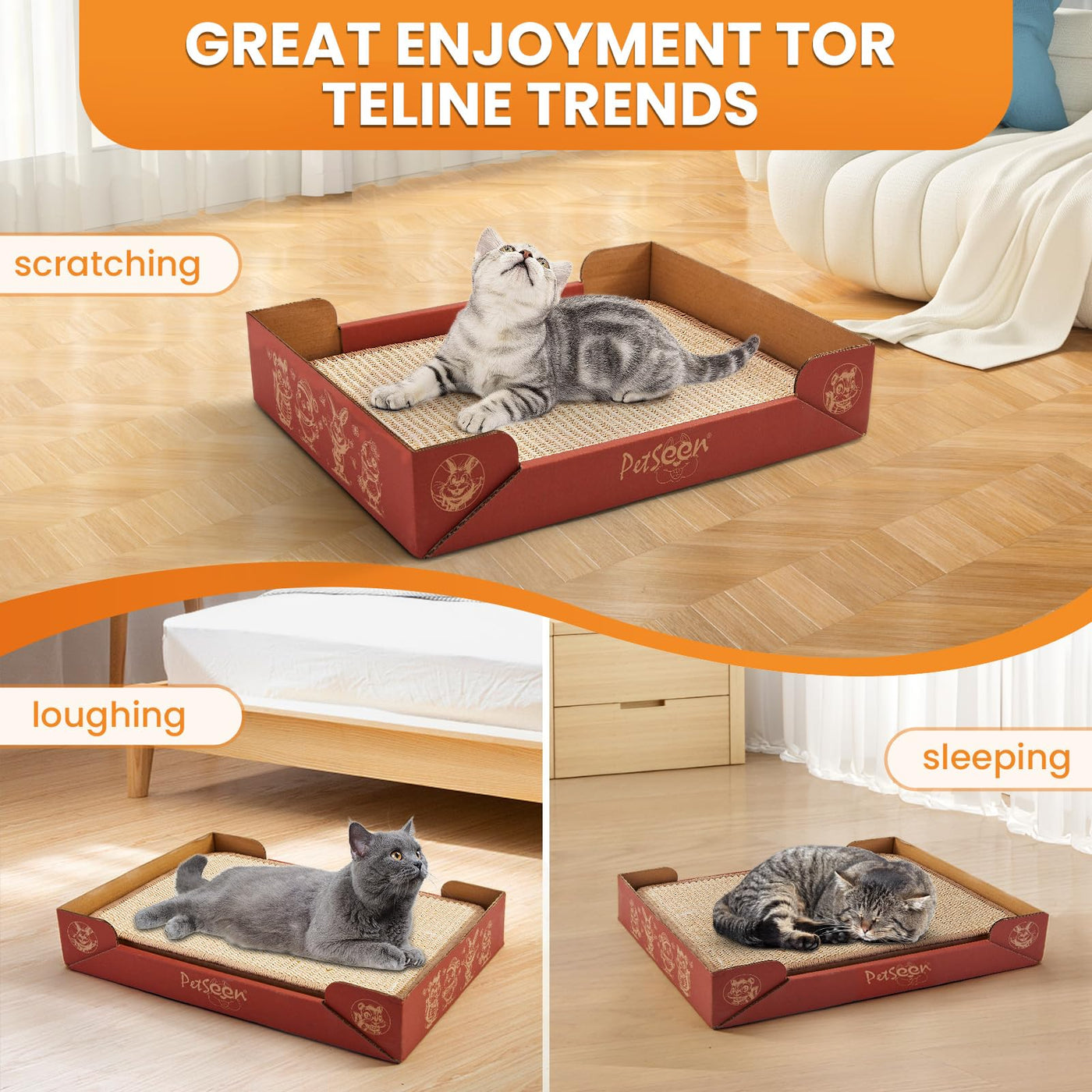 Cat Scratching Board, Corrugated Cardboard With Sisal Pad, 3 In1 Cat Scratch Pad With Box, Cardboard Scratch Boxes For Large Siz