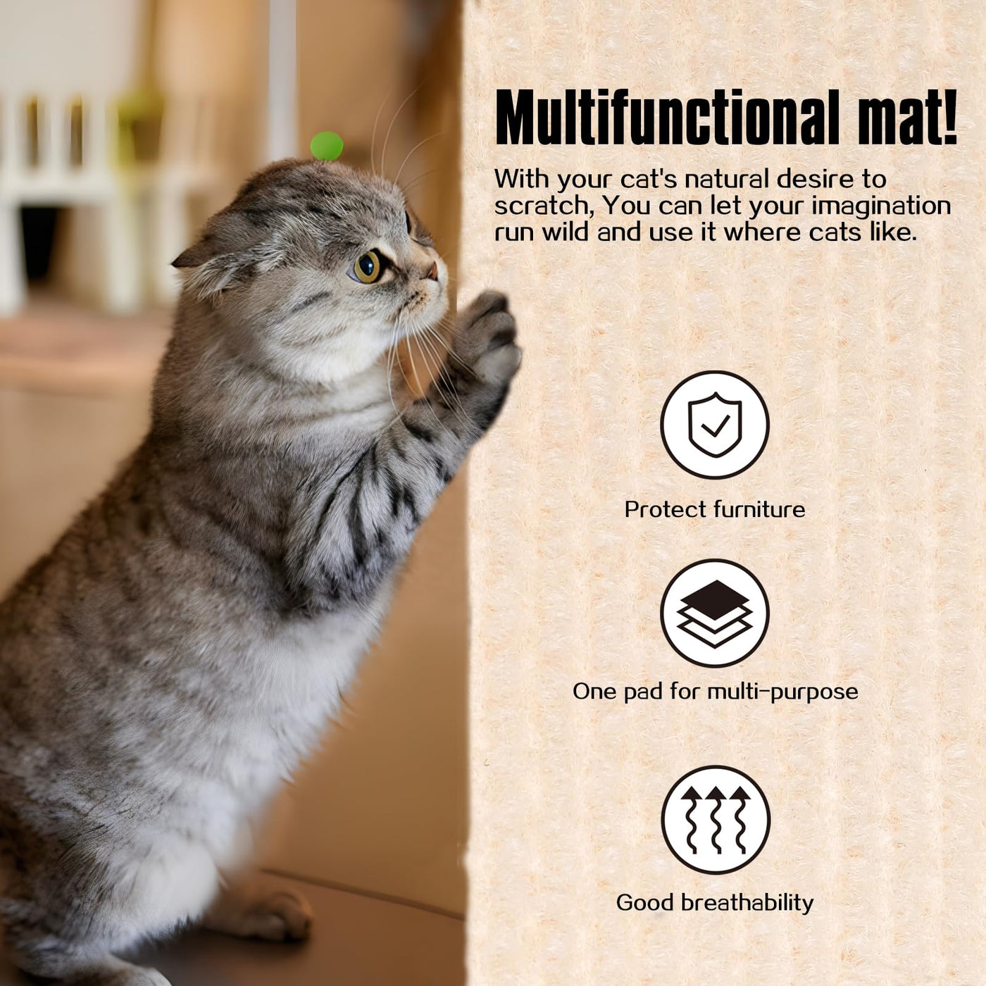 Cat Scratching Mat,Cat Scratch Furniture Protector, Trimmable Self-Adhesive Couch Protector,Carpet Replacement For Tree Shelves,