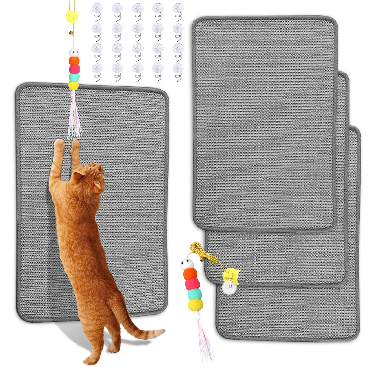 Cat Scratching Mat Sisal, 3 Packs Natural Sisal Fabric 23.6'' X 15.8'' Cat Scratching Pad With Cute Playing Toy And Spiral Nails
