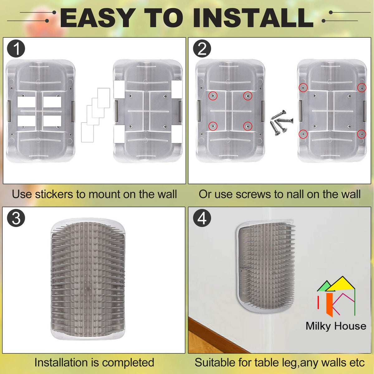 ???Feature:??? ?1. Meet the cat's life habits. You can install a catnip to soothe kittens and make them excited. ?2. It can be installed in any corner of the house. The upgraded version of grooming can be installed on a flat surface or at a corner. Suitable for walls and furniture. It can be installed according to the height of the cat. ?3. Humanized design, the product comes with 4 double-sided tapes and 4 screws. You can choose the installation method according to your needs. ?4. Suitable for all pets, it is the best scratcher toy for pets. Let kittens and puppies entertain themselves and increase the fun in life. ?5. Help collect hair, make cleaning more convenient.