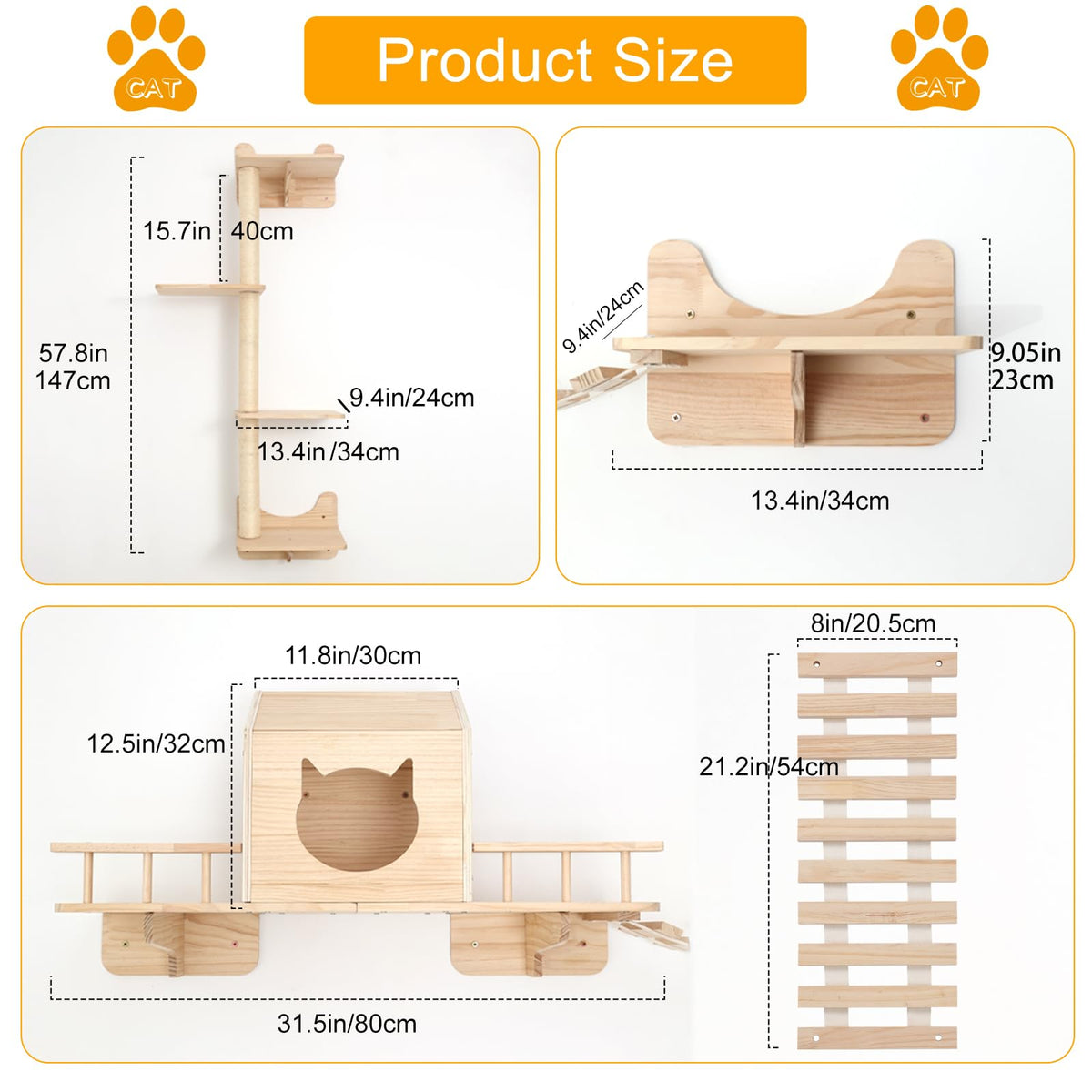 Cat Shelves For Wall, Climbing Shelves Wall-Mounted Furniture Set, Shelf With 1 House, 1 Bridge Ladder, 3 Scratching Posts And 5