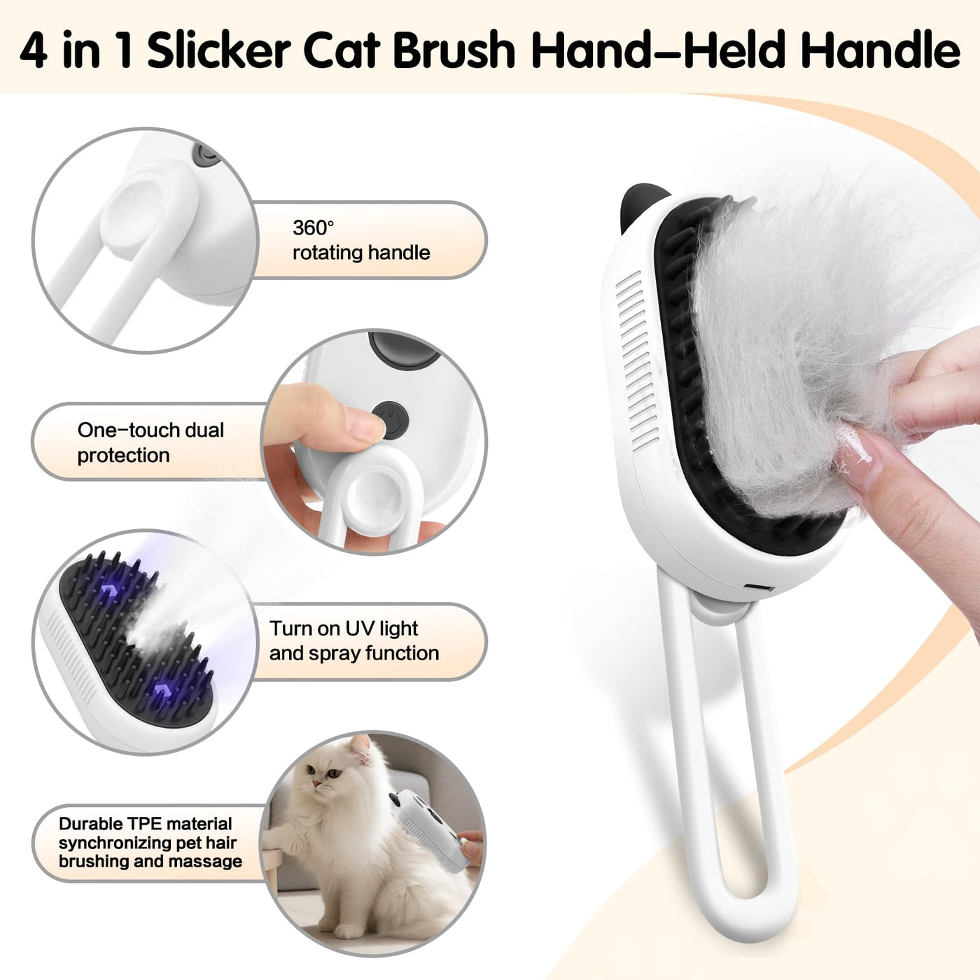 Denwwico Cat Steam Brush, 2024 4-In-1 Cat Brush Combines Hair Removal, Massage, Spray Cleaning And Uv Irradiation In One, Perfectly Meeting The Daily Care Needs Of Pets. Its Scientific Spray System Releases Cleaning Fluid Evenly. Enhances The Moisture And Luster Of Hair, Effectively Reduces Static Electricity And Hair Loss, And Keeps Your Home Tidy. High-Quality Abs And Tpe Materials Ensure Soft Comb Teeth. Will Not Get Stuck Or Pull Your Pet'S Skin, Providing A Safe And Comfortable Combing Experience. 360 Rotating Handle For Easy Operation Suitable For Long-Haired And Short-Haired Cats. One Charge Can Achieve 5-8 Combing Cares. Let You Easily Care For The Health Of Your Pet'S Hair. This Multi-Functional Steam Brush For Cats Is A Thoughtful Choice For Those Who Truly Care About Their Pets.