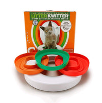 Product Descriptioncats bury their waste in a litter tray to hide the odor from predators This is a survival instinct When they use the toilet instead of the litter tray the water in the pan hides the odor more effectively and the cat is satisfied The Litter Kwitter leads the cat through three stages of behavior modification to teach the cat how to balance on the toilet how to aim correctly into the pan and finally how to go without the need for litter It fits all standard toilets and ships with a step-by-step training DVD plus a full color instruction book so anyone can do it The special white seat starts on the floor next to the toilet with the red training disc full of litter just like their regular litter tray Later the whole thing is placed on the toilet rim so your cat learns to hop up to go This take around 2-3 weeks on average This award-winning product is sold in over 40 countries and has appeared on TV hundreds of times including BBc 1 BBc2 HgTV Fox News cNN and NBcSet contains:Special white seat (fits all standard toilets)3 colour-coded training discsStep-by-step training DVDFull colour instruction manual