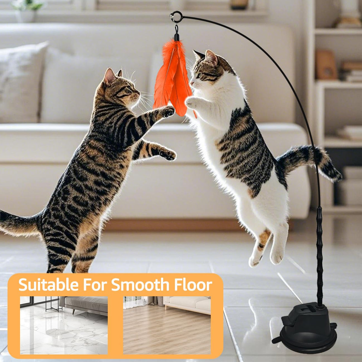 Cat Toys For Indoor Cats,1 Wand+1 Suction Cup+2 Bird+2 Feather+2 Ball+2 Tail+2 String, Interactive Enrichment Stimulation Self P