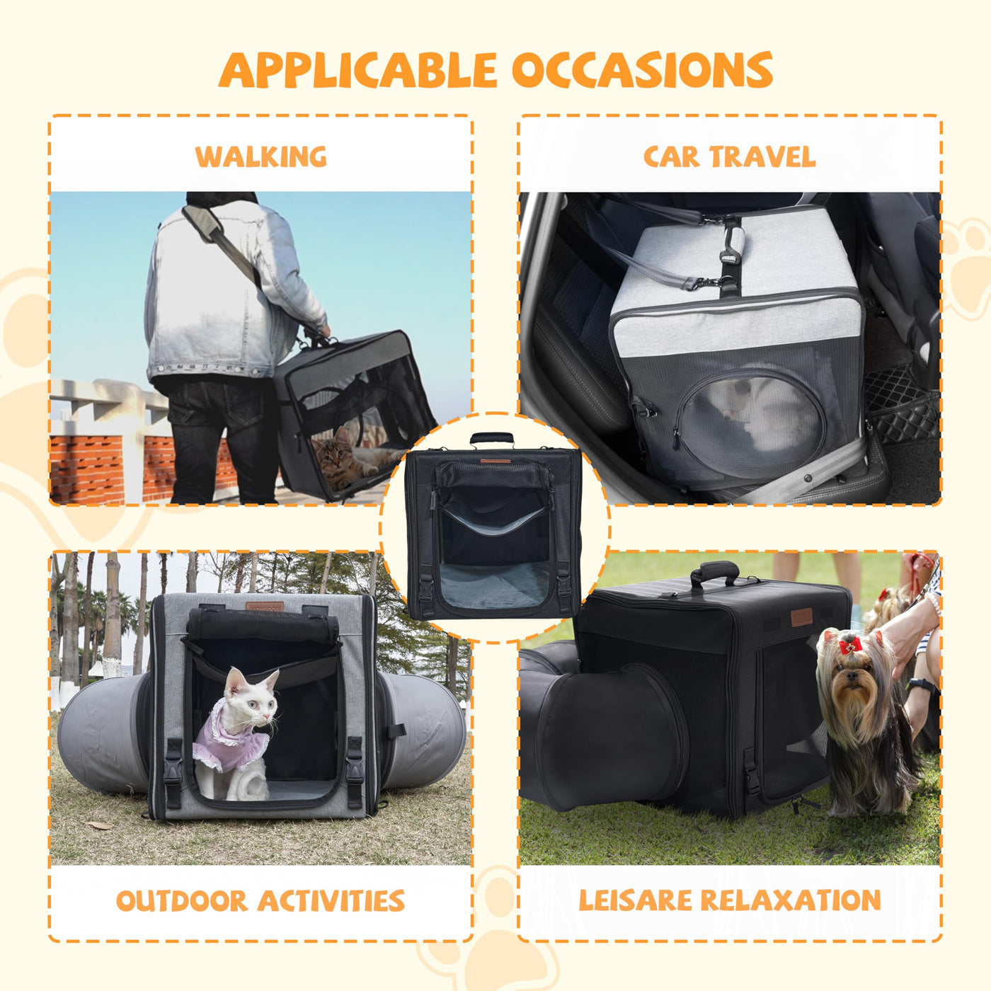 Product Description: The Moysoon Cat Travel Carrier Is The Perfect Solution For Pet Owners Looking For A Comfortable, Safe, And Convenient Way To Travel With Their Cats. Whether It'S A Long-Distance Car Trip Or A Quick Vet Visit, This Cat Carrier With Litter Box For Car Travel Is Designed To Meet Your Needs. Key Features: Spacious And Comfortable For Multiple Cats: This Large Cat Carrier For 2 Cats Ensures Your Pets Have Plenty Of Room To Relax. The Double Cat Carrier Design Is Perfect For Multi-Cat Households, Providing A Roomy And Comfortable Environment For Both Short And Long Trips. Built-In Travel Litter Box: Say Goodbye To Worries About Your Cats Hygiene. Our Cat Travel Carrier With Litter Box Includes An Integrated Litter Box, Making It Ideal For Long Car Trips. This Feature Ensures Your Pets Needs Are Met Without Stress, Making It The Perfect Choice For Car Travel. Expandable For Extra Space: The Xl Expandable Cat Travel Carrier Increases In Size When Needed, Giving Your Cats More Room To Stretch Out. This Makes It Ideal For Multi-Cat Carriers Or Traveling With Pets Of Different Sizes, Such As For 2 Cats Or Even Larger Cats. Escape-Proof And Secure: Safety Is Our Priority. With Secure Zippers, Safety Straps, And An Escape-Proof Cat Harness, This Cat Transport Carrier Ensures Your Cats Stay Safely Inside During The Ride. It'S One Of The Safest Car Cat Carriers Available. Collapsible For Easy Storage: Once You'Re Done Traveling, Simply Collapse The Carrier For Easy Storage. This Collapsible Cat Carrier Is Space-Saving, Perfect For When Not In Use, And Ideal For Storing In Your Car, Home, Or As A Cat Travel Kennel With Litter Box. Why Choose Moysoon Cat Travel Carrier? The Moysoon Cat Travel Carrier With Litter Box Is Designed For Comfort And Convenience. Its Perfect For Cat Owners Who Need A Carrier For 2 Cats, Offering Ample Ventilation And Ensuring Hygiene. Ideal For Long Trips, It Prioritizes Comfort, Safety, And Convenience For Your Cats During Travel.