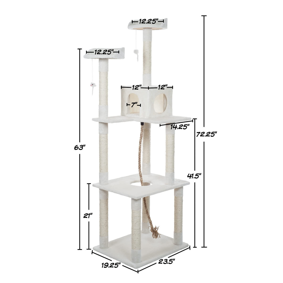 Give Your Feline Friend The Purrfect Place To Sleep, Scratch, And Play With The 6-Foot Cat Tree For Indoor Cats By Petmaker. This Ultimate Cat House Features A Carpeted Base, Perches For Napping, A Large Cat Condo With 2 Openings, A Hanging Rope That Extends The Length Of Two Levels, 9 Sisal Rope Scratching Posts For Indoor Cats, And 2 Dangling Mouse Toys To Keep Your Feline Friends Stimulated While You Are Not Home. These All-In-One Cat Trees Deter Your Pet From Using Your Furniture To Sharpen And Trim Their Nails By Providing Hours Of Stimulating Play That Will Leave Them Ready For A Cat Nap. Important: Petmaker Is Committed To Providing The Consumer With The Absolute Best Price And Value On Our Entire Line Of Products. Note: This Is An Exclusive Product Of Petmaker And Only Cat Beds & Furniture By Petmaker Are Guaranteed To Be Genuine. Avoid Buying Counterfeit Products And Transacting With Unauthorized Sellers.