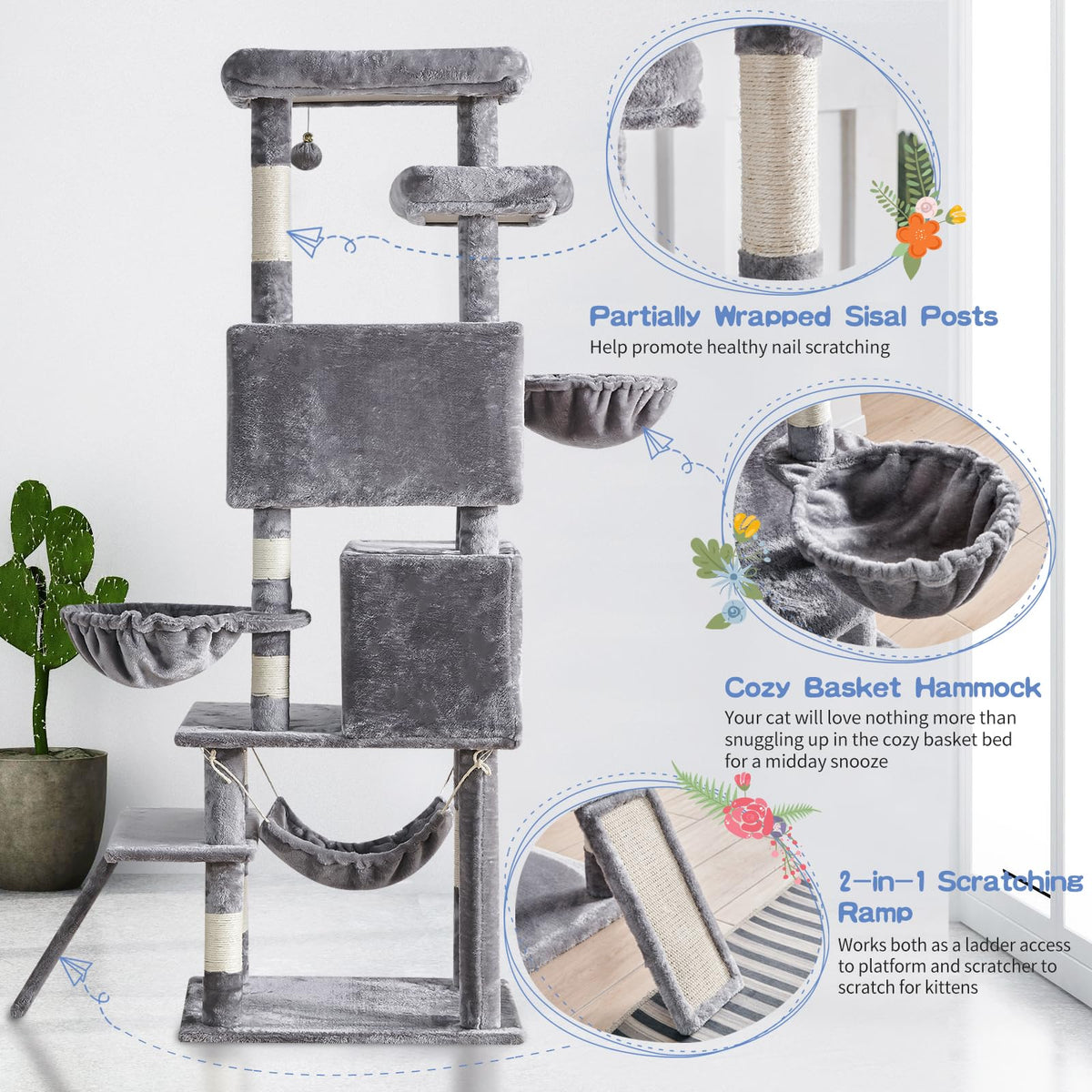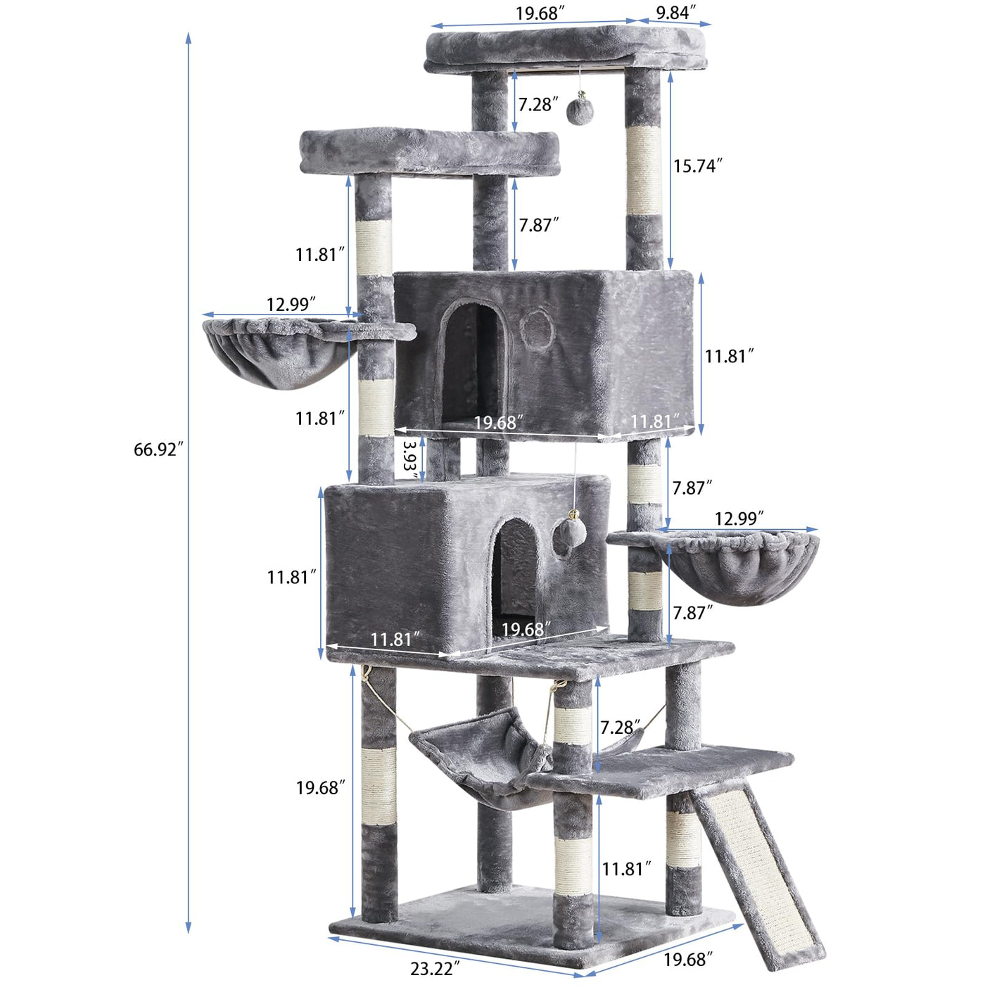 Cat Tree For Indoor Cats Large Adult, 66.9 Inches Multi-Level Tall Cat Tower With Sisal Scratching Posts, Large Plush Perches, S