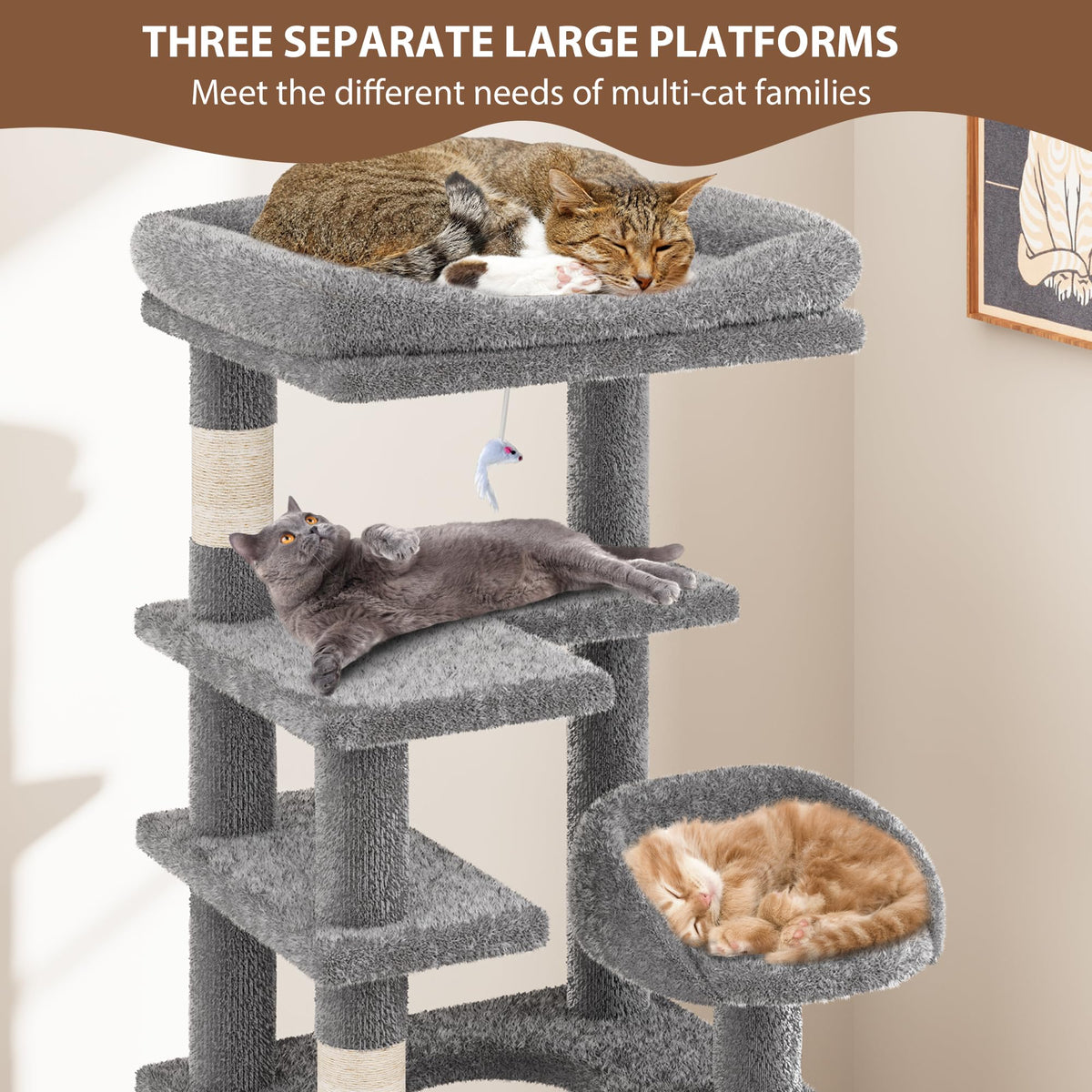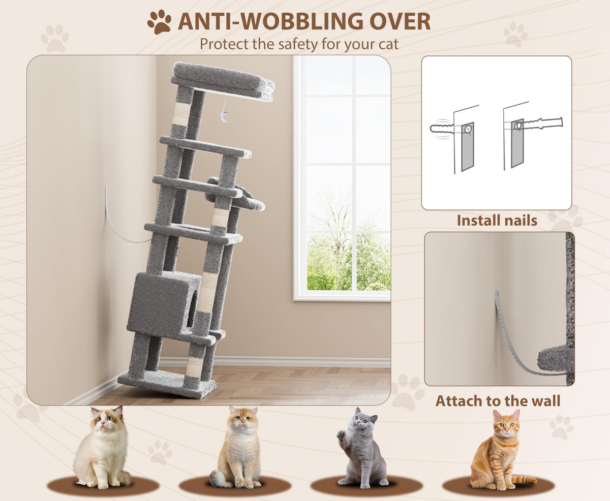 Cat Tree, Tall Cat Tower Condo For Indoor Large Cats, Cat House Furniture With Padded Plush Perch Sisal Scratching Posts