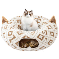 Cat Tunnel Bed For Indoor Cats, Cat Donut Tunnel With Washable Cushion, Peekaboo Cat Cave Toy, Multifunctional Playground Toys F