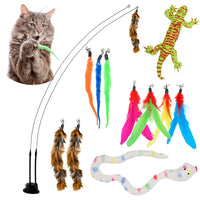 Hands-Free Play with Secure Suction Base Simply attach this cat wand toy suction base to the floor, wall, or window for independent play. Its a must-have for cat owners looking for enrichment toys. Interactive Bird Toy for Realistic Hunting Fun The feather wand cat toy mimics a real bird for cats, triggering natural pouncing and swatting behavior. Your cat will stay entertained for hours. Three Worm Attachments and Six Feathers for Versatile Fun Cats love variety, and this cat toy set delivers. The wiggly worm cat toy and dangling feather toys provide endless engagement. Durable, Safe, and Built for Playful Paws Made with sturdy materials, this cat toy for indoor cats is safe, non-toxic, and designed to handle rough play. Juguete interactivo de caza para gatos Con plumas y gusanos intercambiables, este juguete para gatos despierta el instinto cazador natural, asegurando horas de entretenimiento.