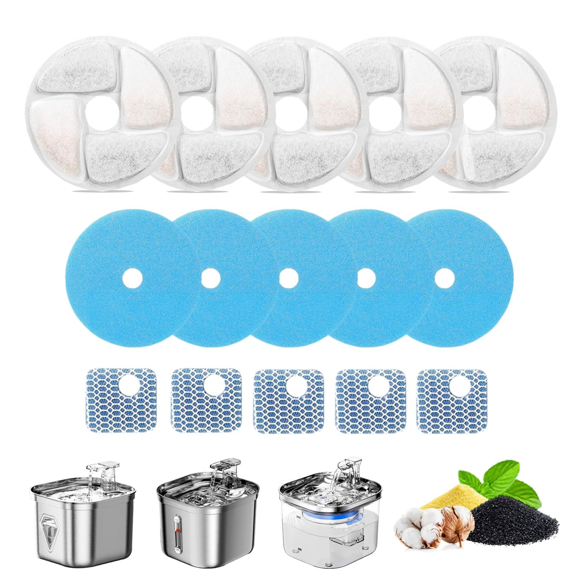 Cat Water Fountain Filter,Cat Fountain Filters Replacement For Square 2.2L/73Oz Stainless Steel Pet Water Fountain,5 Pack Pet Fountain Filter Replacement