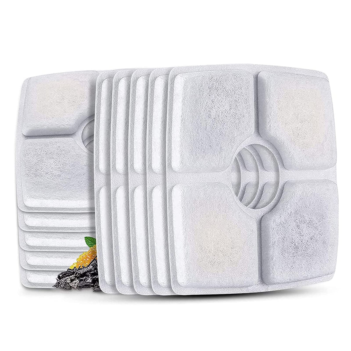 Cat Water Fountain Filters,10 Pack Replacement Filter Fit For Top Square 84Oz/2.5L Cat Pet Fountain, 3 Filtration System With 5 Pre-Filter Sponges