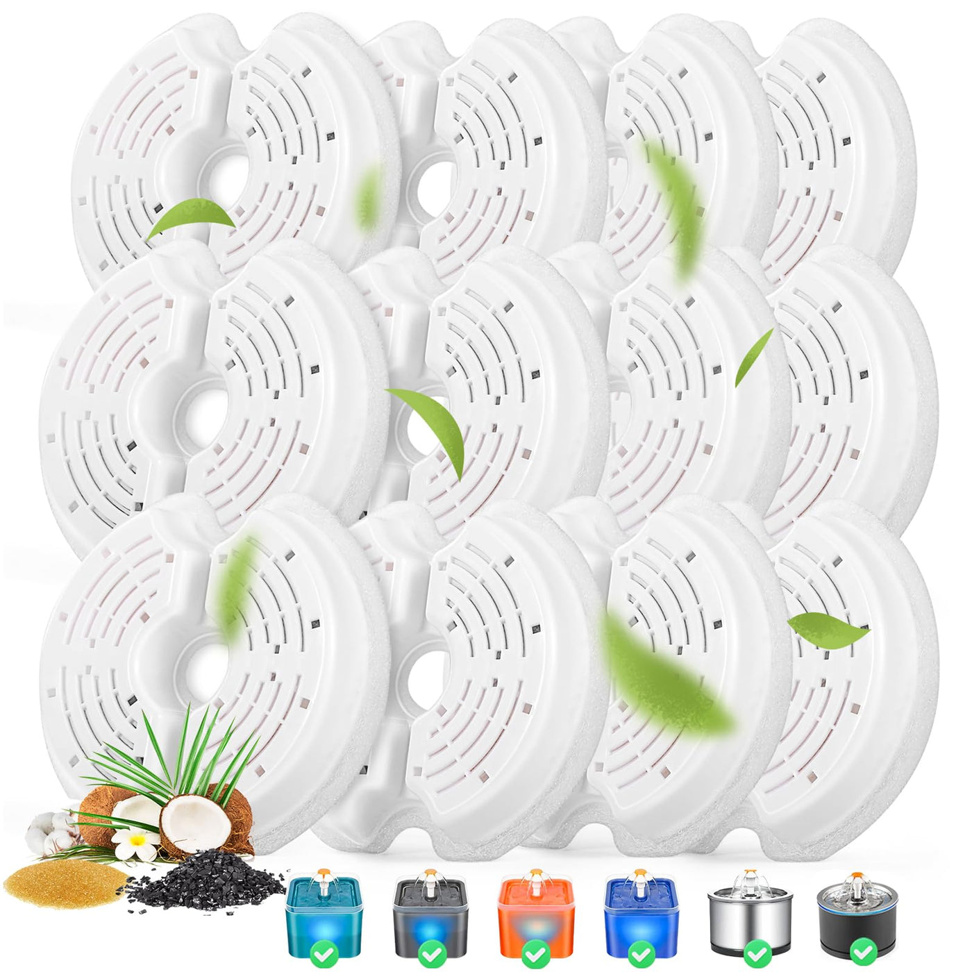 Cat Water Fountain Filters For 84Oz/2.5L Stainless Steel Pet Fountain And 67Oz/2.0L Plastic Cat Drinking Fountain, 12 Pack Pet Replacement Filters Set